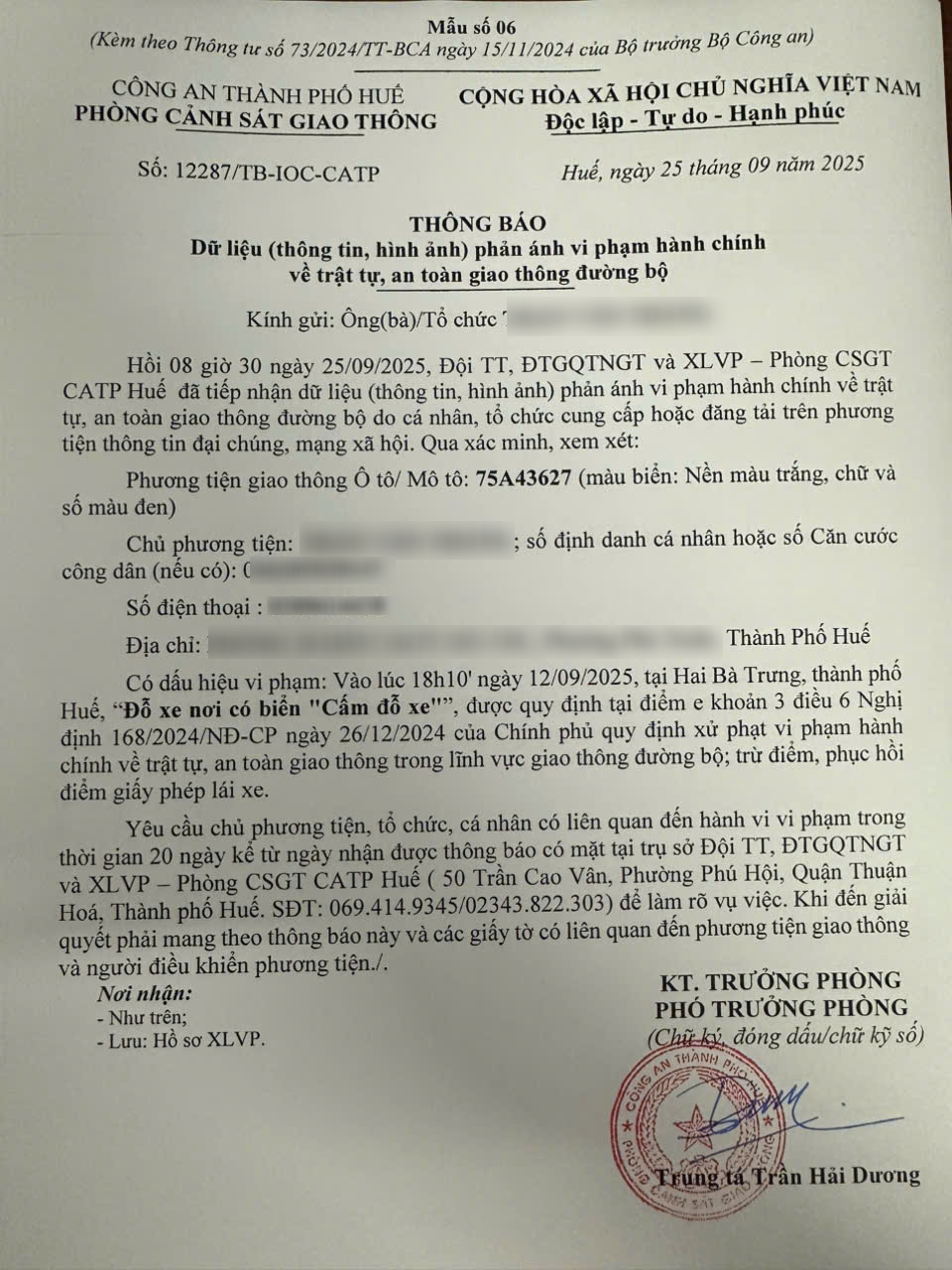 Vấn đề quý Ông/Bà phản ánh, Phòng Cảnh sát giao thông – Công an thành phố Huế đã kiểm tra và xin thông báo kết quả như sau: