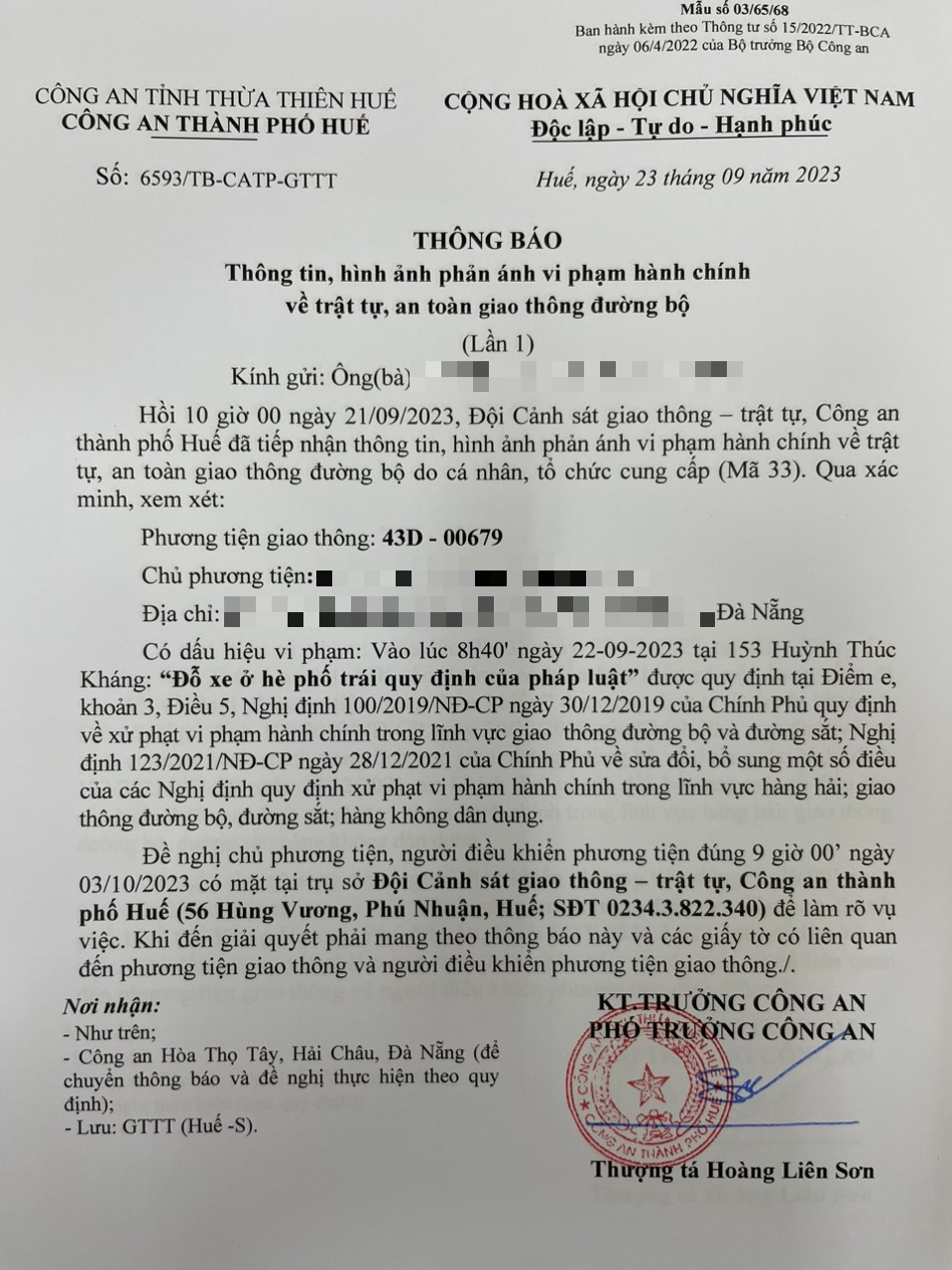 Vấn đề Ông/Bà phản ánh, Công an tỉnh đã chỉ đạo Công an thành phố Huế xác minh và xin thông báo kết quả như sau:
