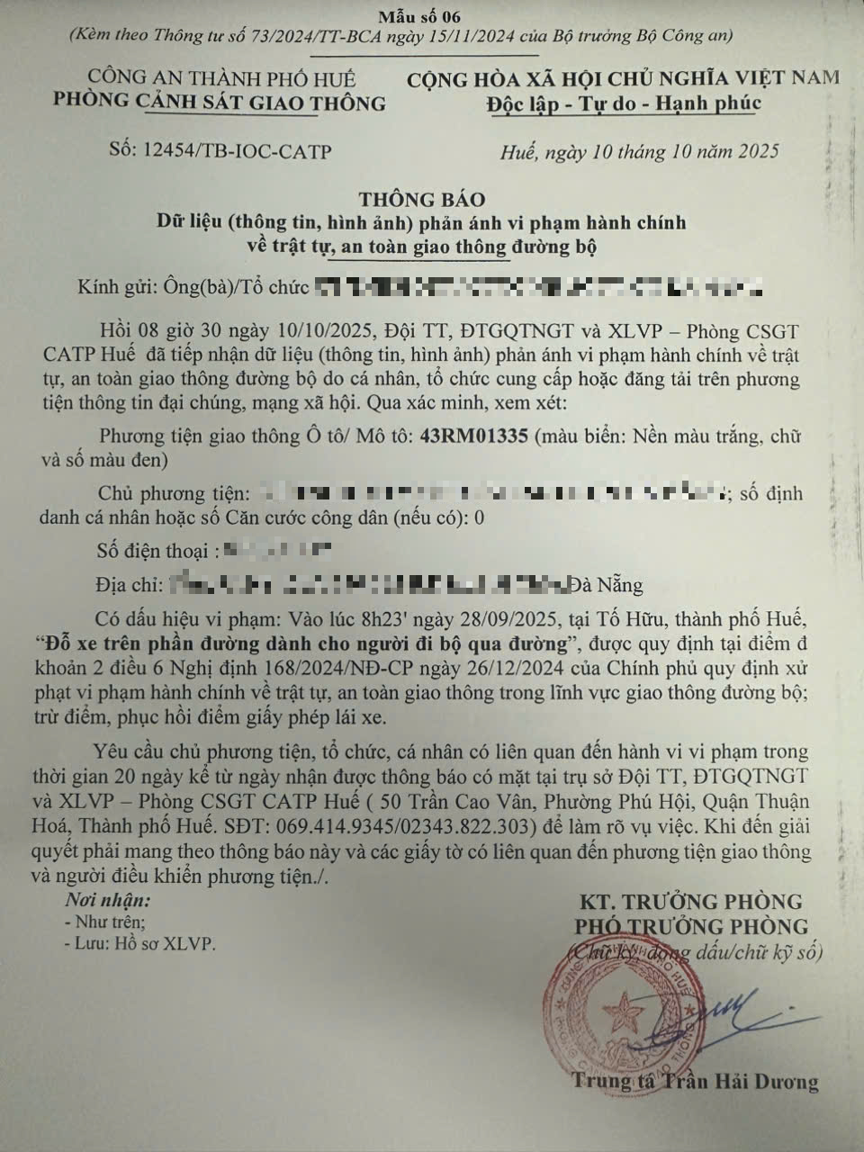 Vấn đề quý Ông/Bà phản ánh, Phòng Cảnh sát giao thông – Công an thành phố Huế đã kiểm tra và xin thông báo kết quả như sau: