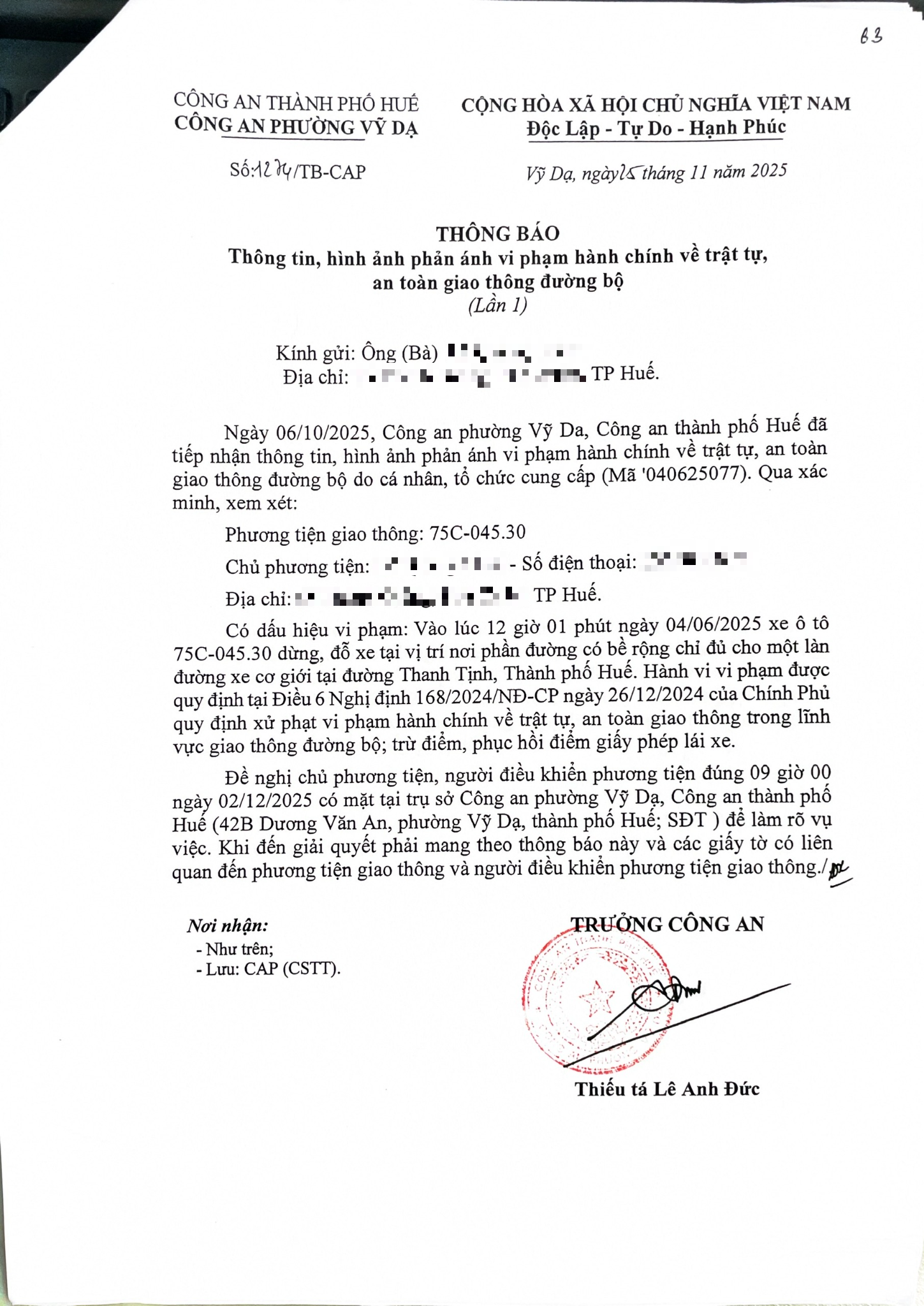 Vấn đề quý Ông/Bà phản ánh, Công an thành phố Huế đã chỉ đạo Công an phường Vỹ Dạ kiểm tra và xin thông báo kết quả như sau: