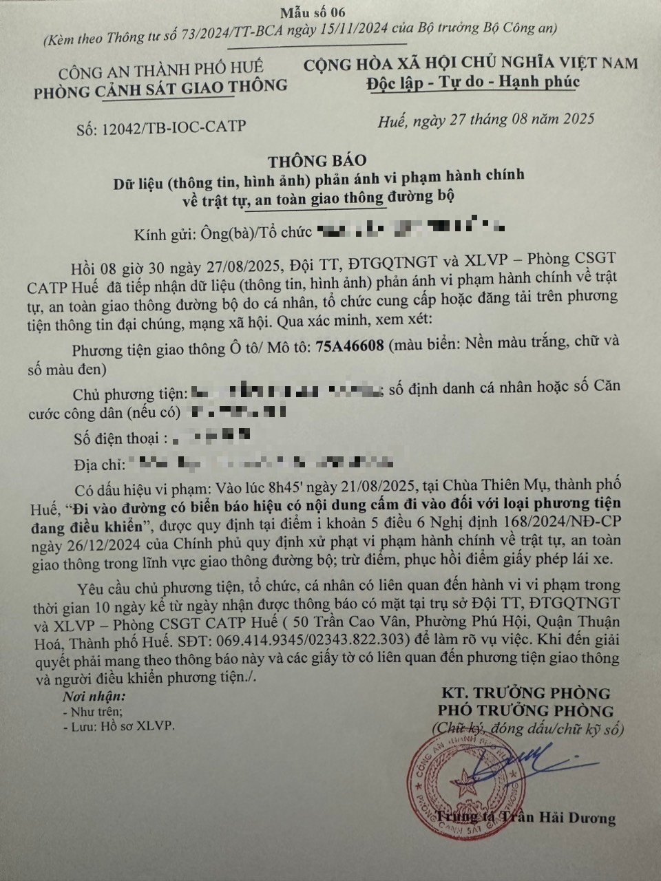 Vấn đề quý Ông/Bà phản ánh, Phòng Cảnh sát giao thông – Công an thành phố Huế đã kiểm tra và xin thông báo kết quả như sau: