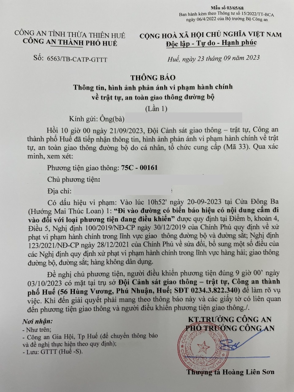 Vấn đề Ông/Bà phản ánh, Công an tỉnh đã chỉ đạo Công an thành phố Huế xác minh và xin thông báo kết quả như sau: