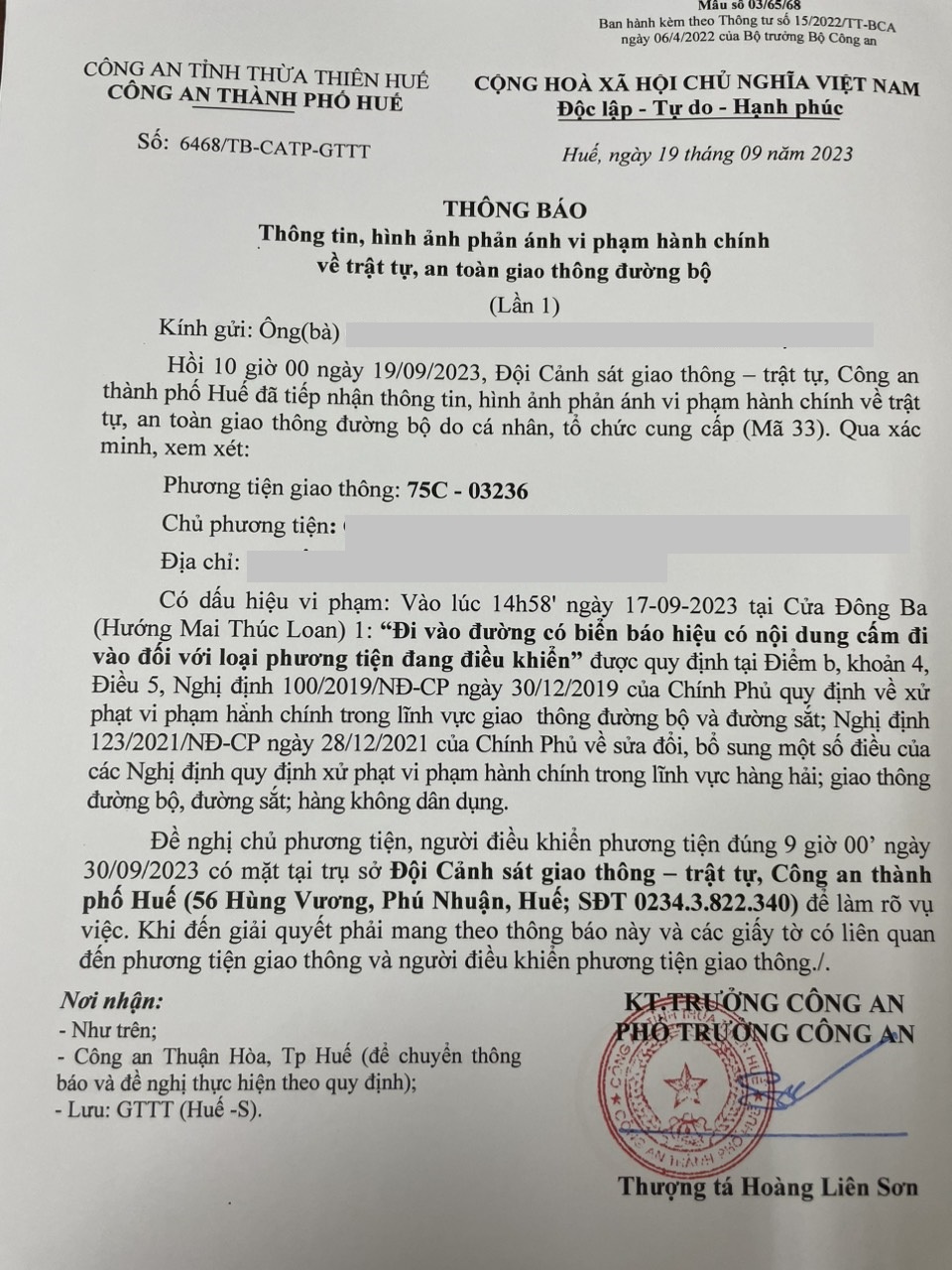 Vấn đề quý Ông/Bà phản ánh, Công an tỉnh đã chỉ đạo Công an thành phố Huế kiểm tra và xin thông báo kết quả như sau: