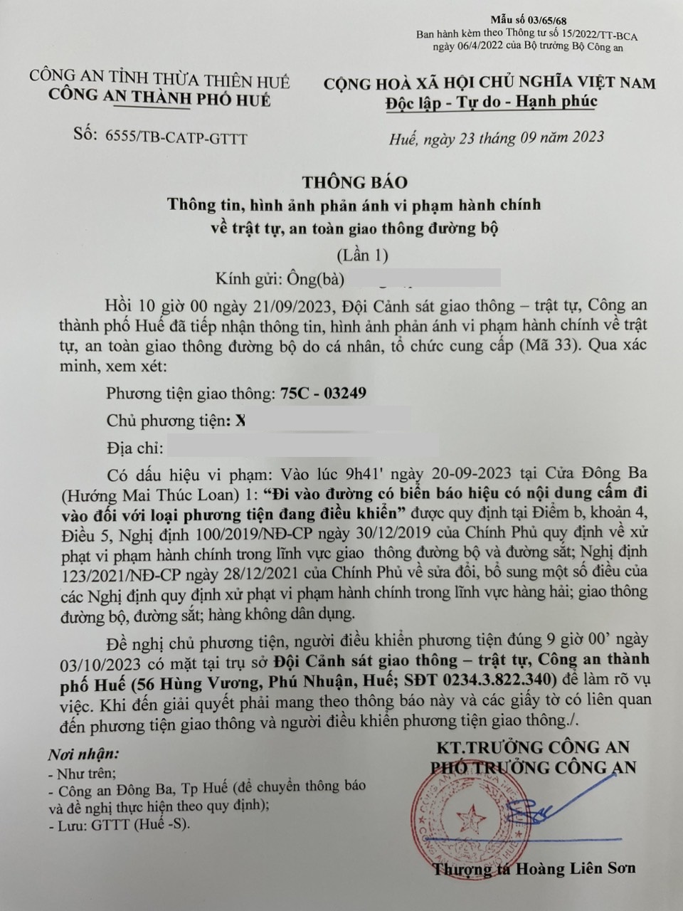 Vấn đề Ông/Bà phản ánh, Công an tỉnh đã chỉ đạo Công an thành phố Huế xác minh và xin thông báo kết quả như sau: