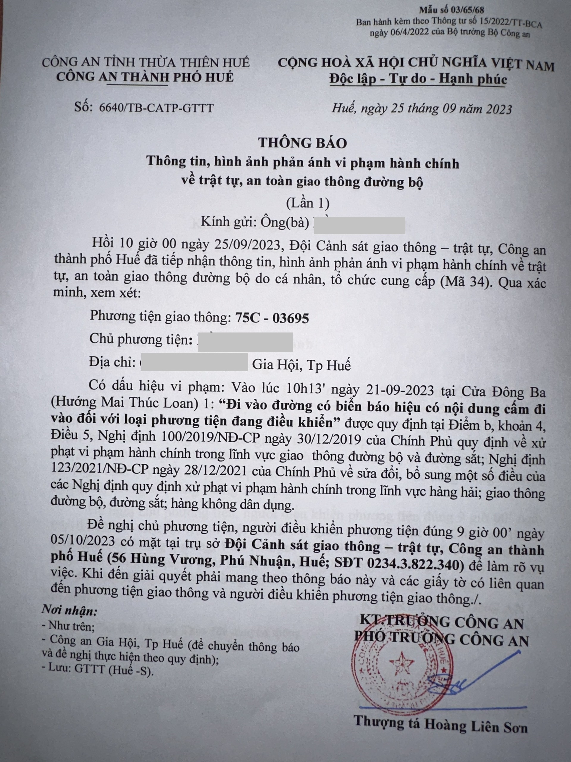 Vấn đề quý Ông/Bà phản ánh, Công an tỉnh đã chỉ đạo Công an thành phố Huế xác minh và xin thông báo kết quả như sau: