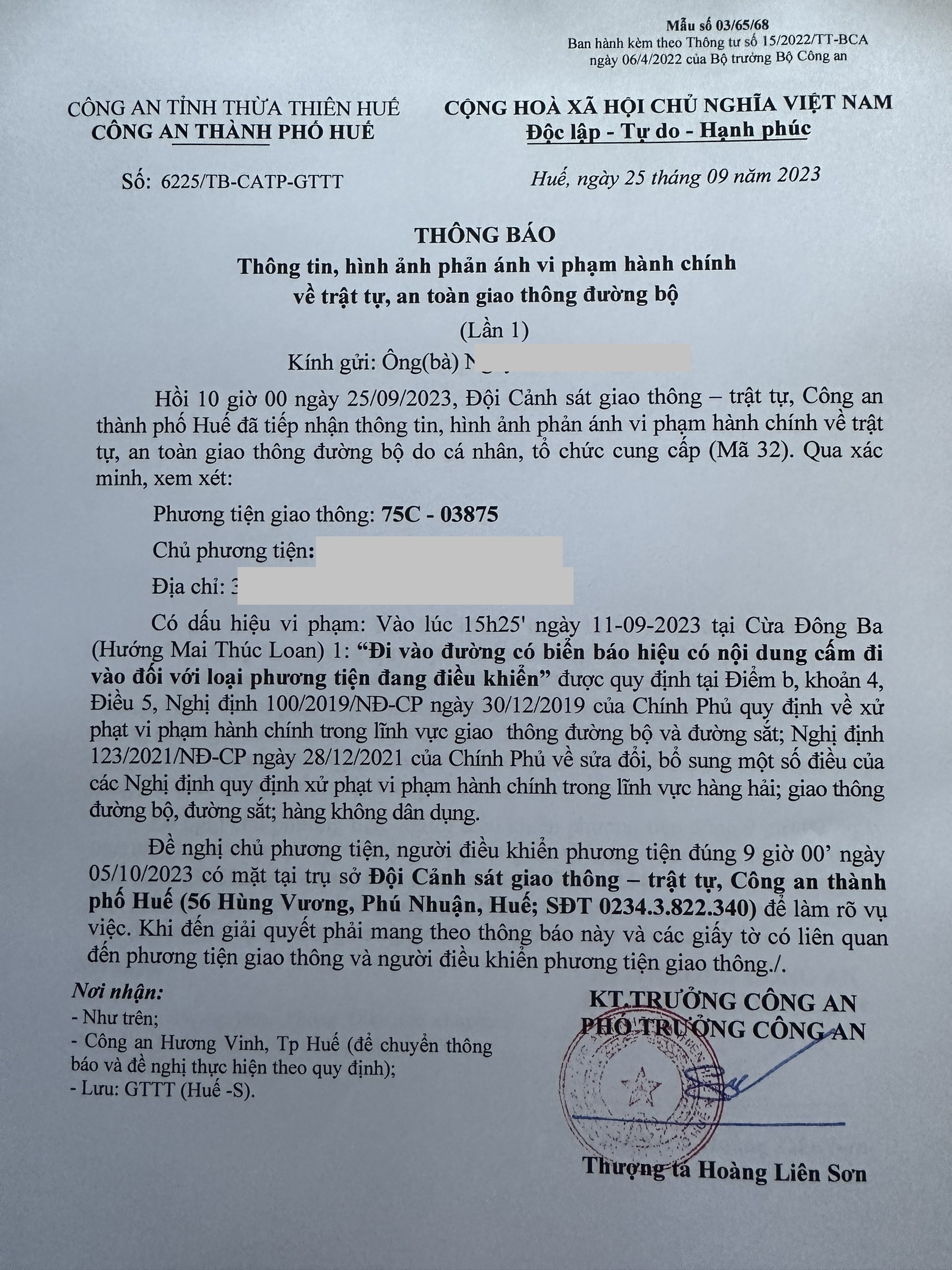 Công an thành phố Huế cập nhật quyết định xử phạt: (Đính kèm quyết định xử phạt vi phạm hành chính)