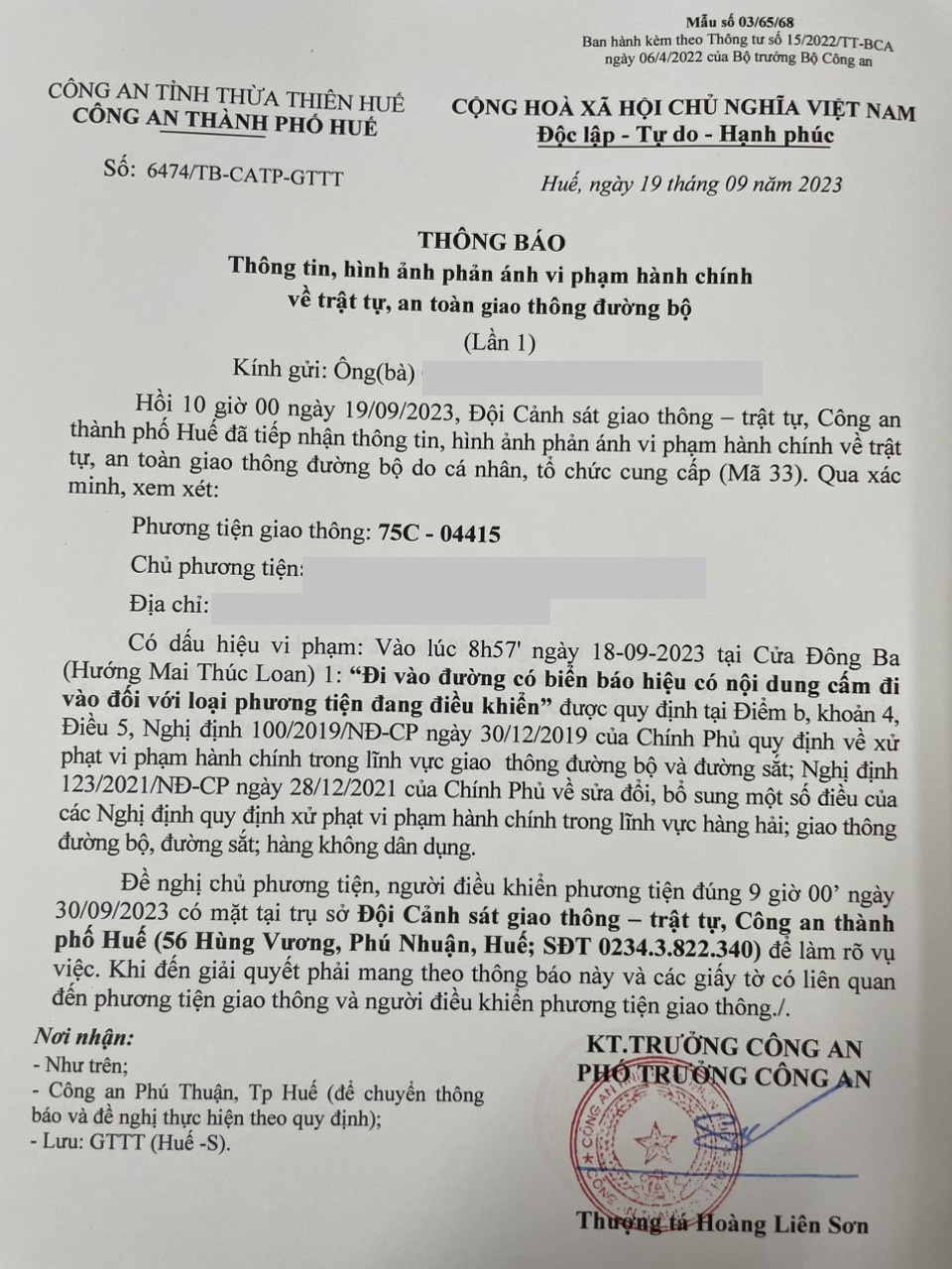 Vấn đề quý Ông/Bà phản ánh, Công an tỉnh đã chỉ đạo Công an thành phố Huế xác minh và xin thông báo kết quả như sau: