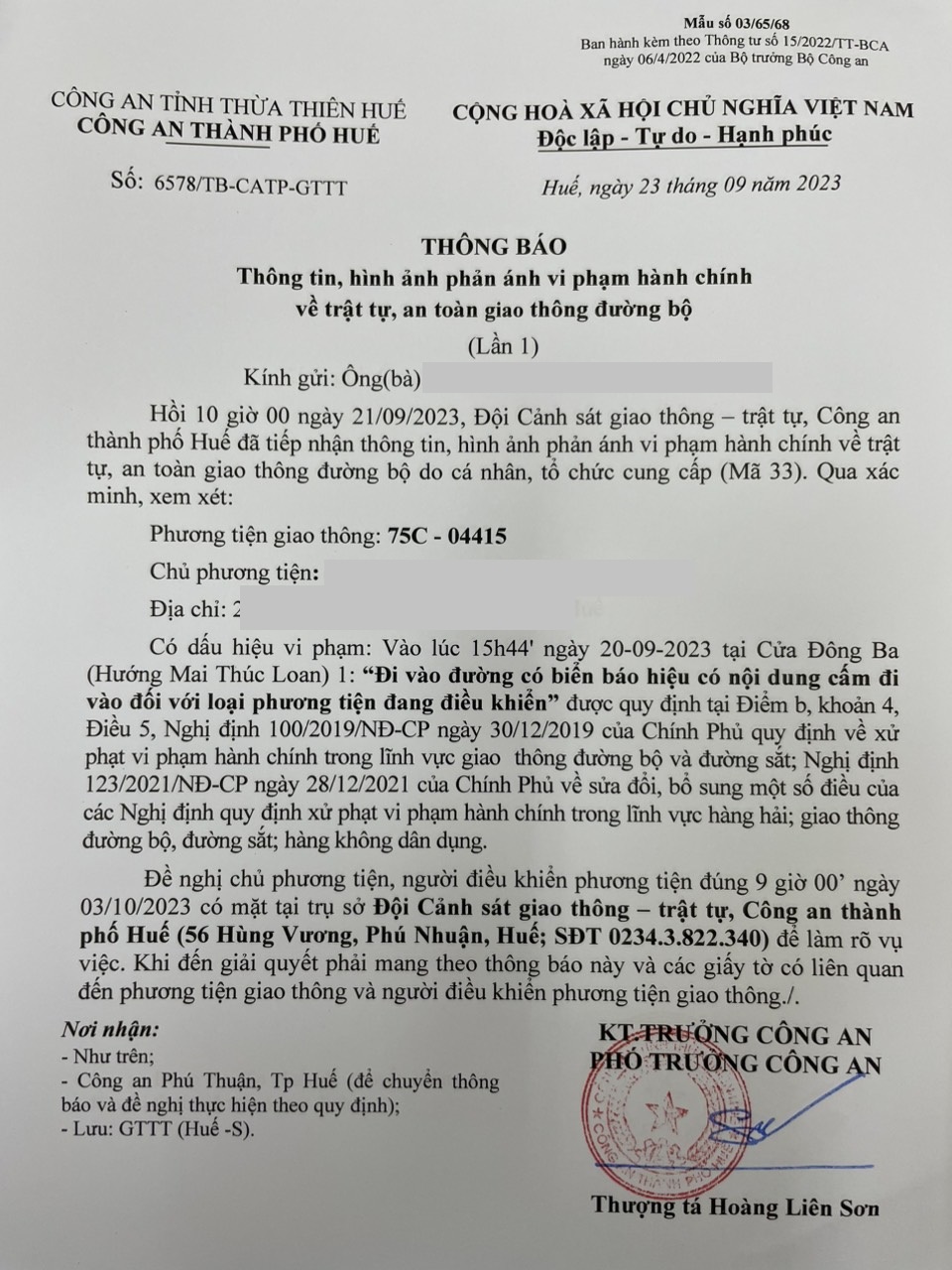 Vấn đề quý Ông/Bà phản ánh, Công an tỉnh đã chỉ đạo Công an thành phố Huế kiểm tra và xin thông báo kết quả như sau:
