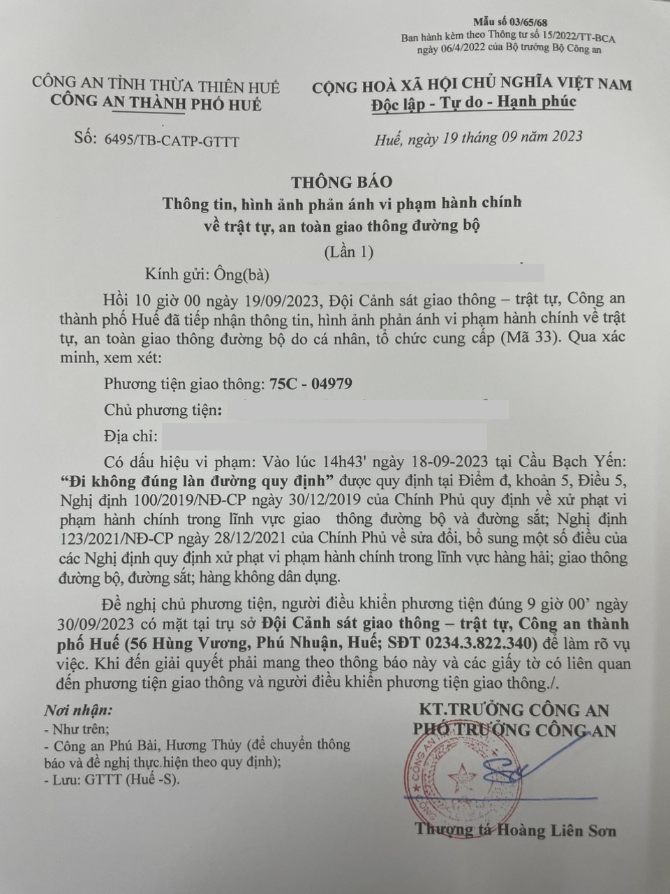 Vấn đề Ông/Bà phản ánh, Công an tỉnh đã chỉ đạo Công an thành phố Huế kiểm tra và xin thông báo kết quả như sau: