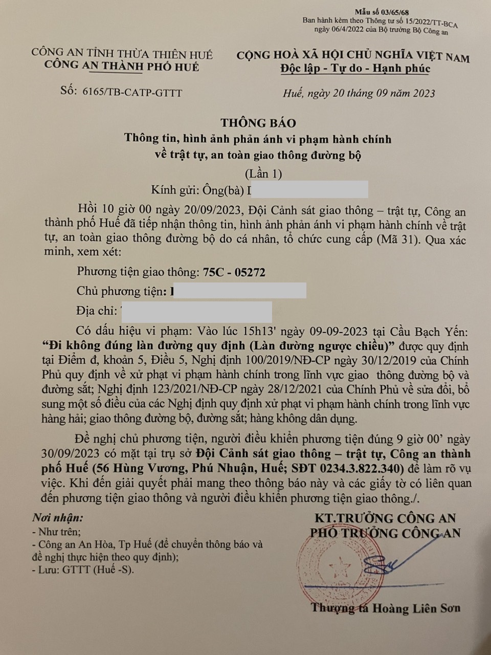 Công an thành phố cập nhật kết quả: Qua xác minh làm việc với chủ phương tiện vi phạm lỗi: Không chấp hành hiệu lệnh, chỉ dẫn của vạch kẻ đường, quy định tại điểm a, khoản 1, điều 5 Nghị định 100/2019/NĐ-CP được sửa đổi, bổ sung tại Nghị định 123/NĐ-CP ngày 28/12/2021. Ra Quyết định xử phạt 350.000đ. (Đính kèm Quyết định)