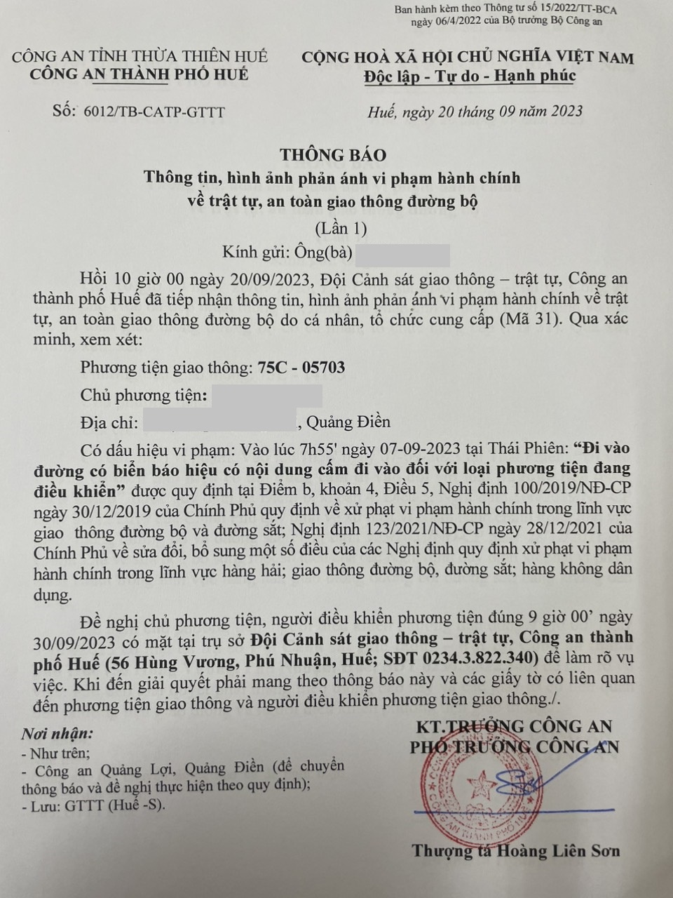 Vấn đề quý Ông/Bà phản ánh, Công an tỉnh đã chỉ đạo Công an thành phố Huế kiểm tra và xin thông báo kết quả xử lý như sau: