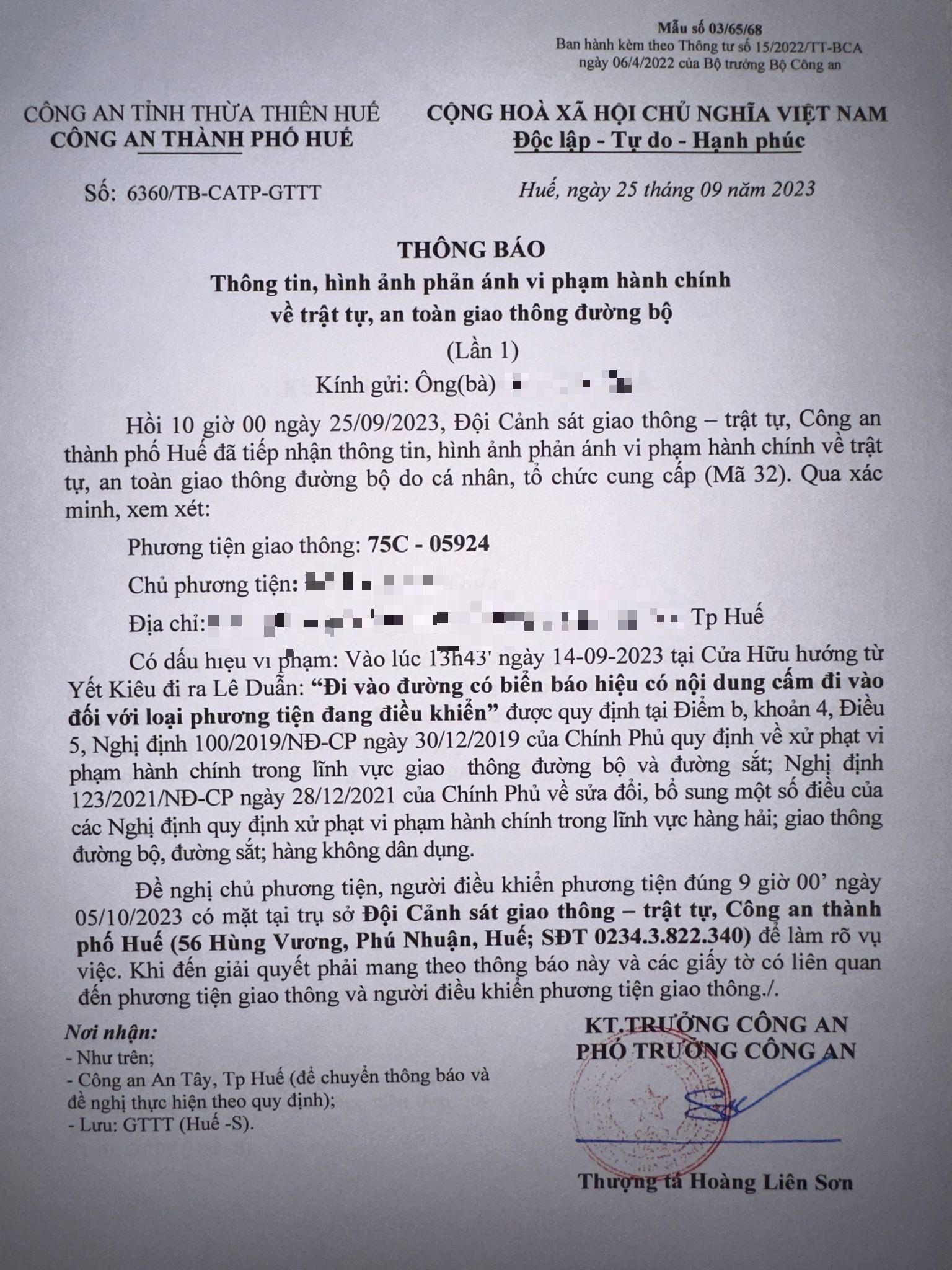Vấn đề quý Ông/Bà phản ánh, Công an tỉnh đã chỉ đạo Công an thành phố Huế kiểm tra và xin thông báo kết quả như sau: