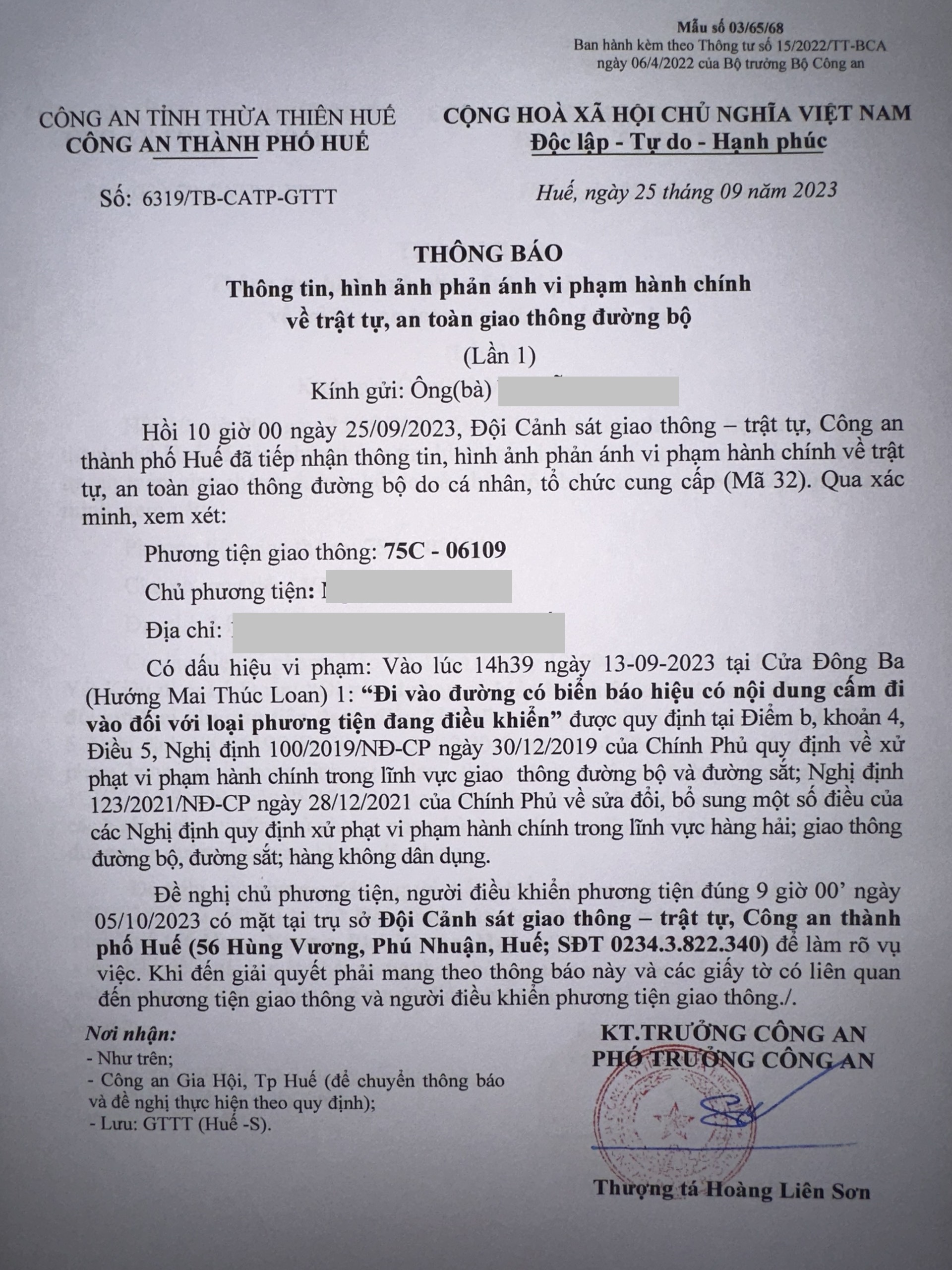 Vấn đề quý Ông/Bà phản ánh, Công an tỉnh đã chỉ đạo Công an thành phố Huế kiểm tra và xin thông báo kết quả xử lý như sau: