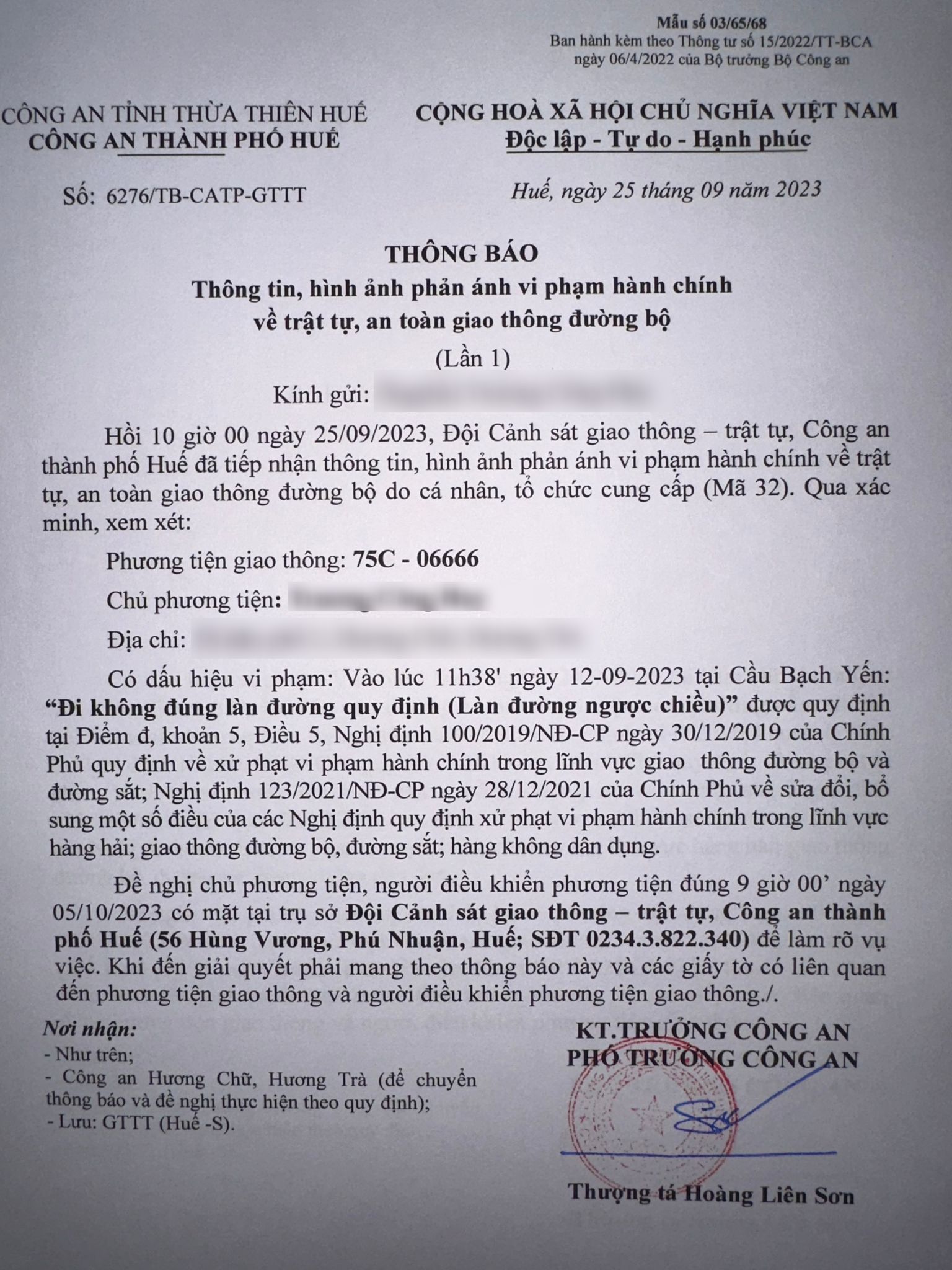 Vấn đề Ông/Bà phản ánh, Công an tỉnh đã chỉ đạo Công an thành phố Huế kiểm tra và xin thông báo kết quả như sau: