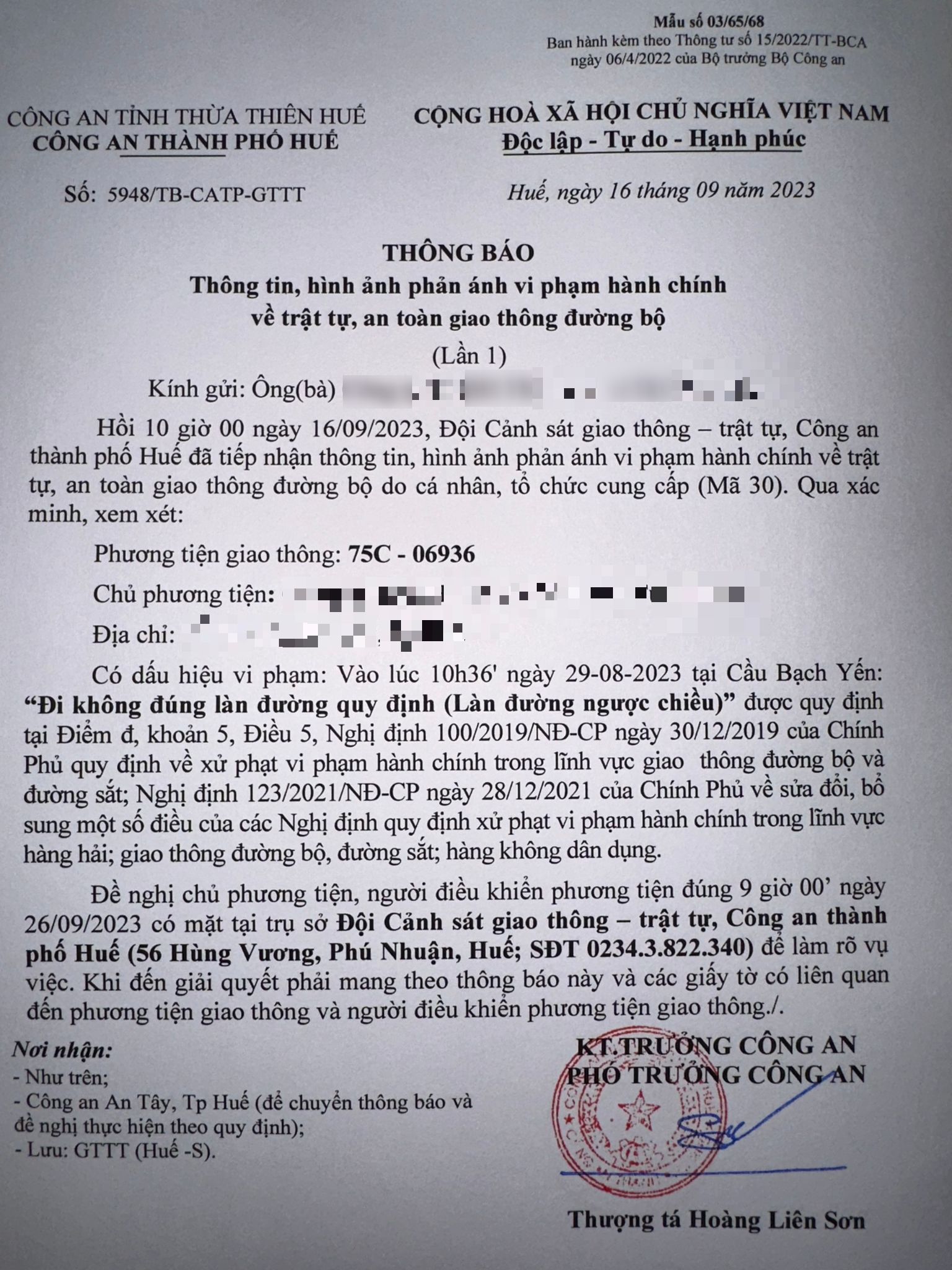 Vấn đề quý Ông/Bà phản ánh, Công an tỉnh đã chỉ đạo Công an thành phố Huế kiểm tra và xin thông báo kết quả như sau: