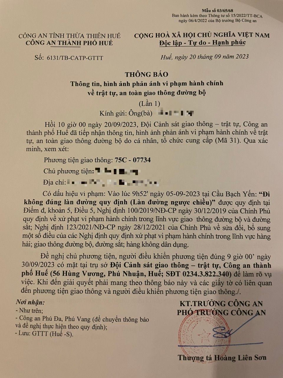 Vấn đề quý Ông/Bà phản ánh, Công an tỉnh đã chỉ đạo Công an thành phố Huế kiểm tra và xin thông báo kết quả xử lý như sau: