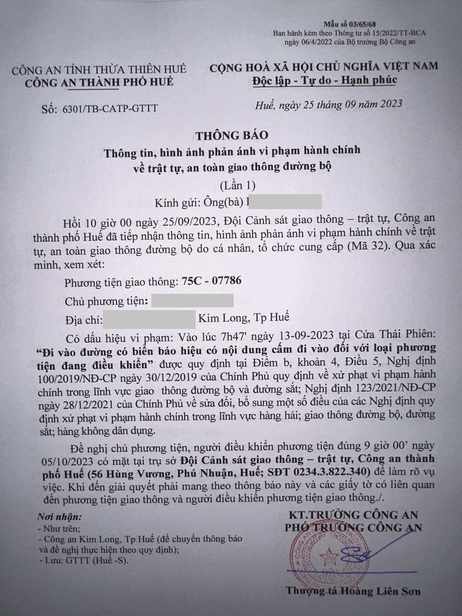 Vấn đề quý Ông/Bà phản ánh, Công an tỉnh đã chỉ đạo Công an thành phố Huế xác minh và xin thông báo kết quả như sau: