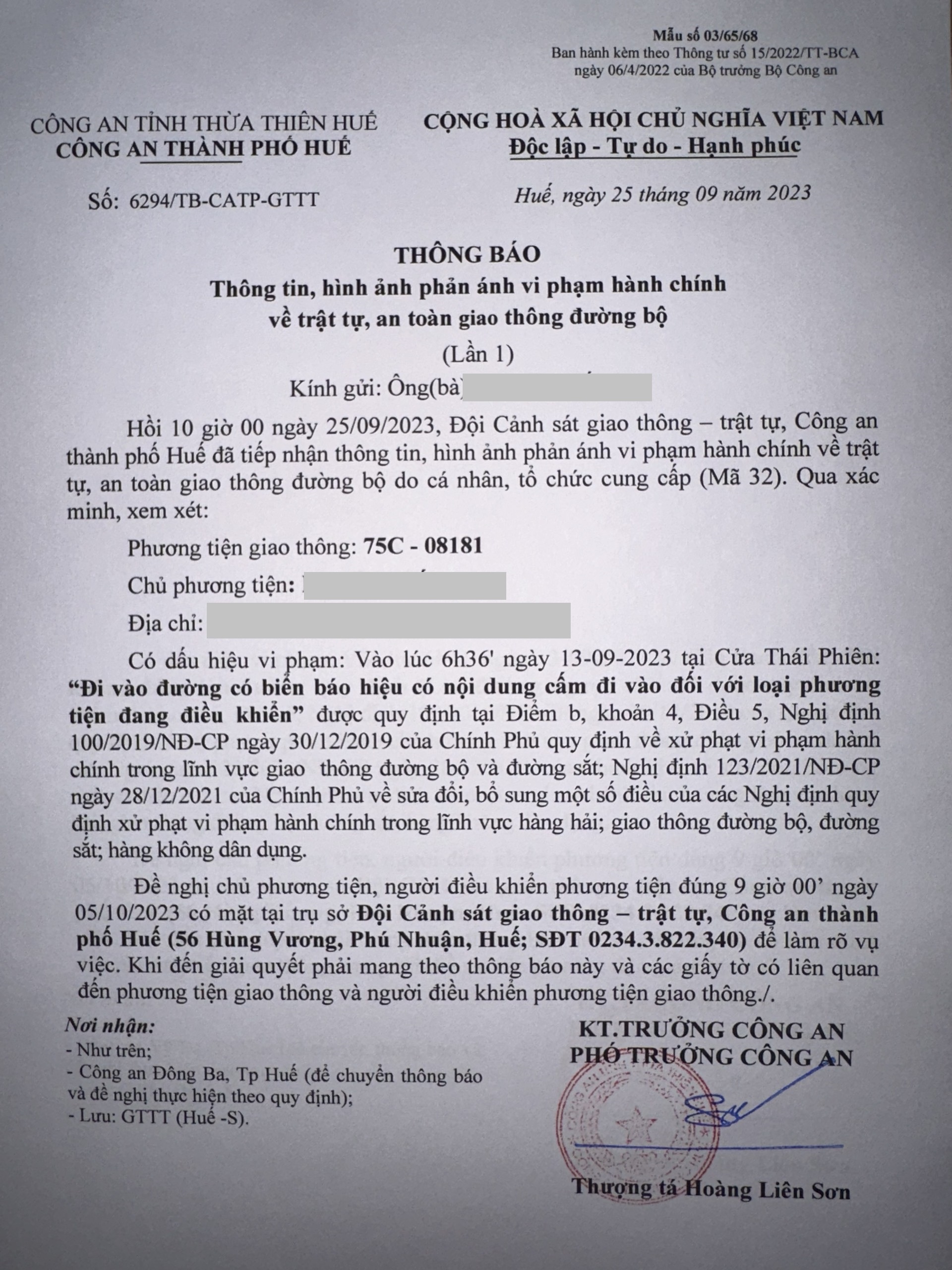 Vấn đề quý Ông/Bà phản ánh, Công an tỉnh đã chỉ đạo Công an thành phố Huế kiểm tra và xin thông báo kết quả như sau: