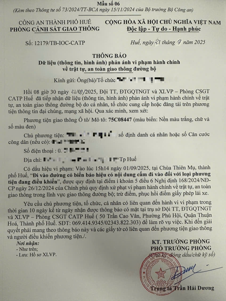 Vấn đề quý Ông/Bà phản ánh, Phòng Cảnh sát giao thông – Công an thành phố Huế đã kiểm tra và xin thông báo kết quả như sau:
