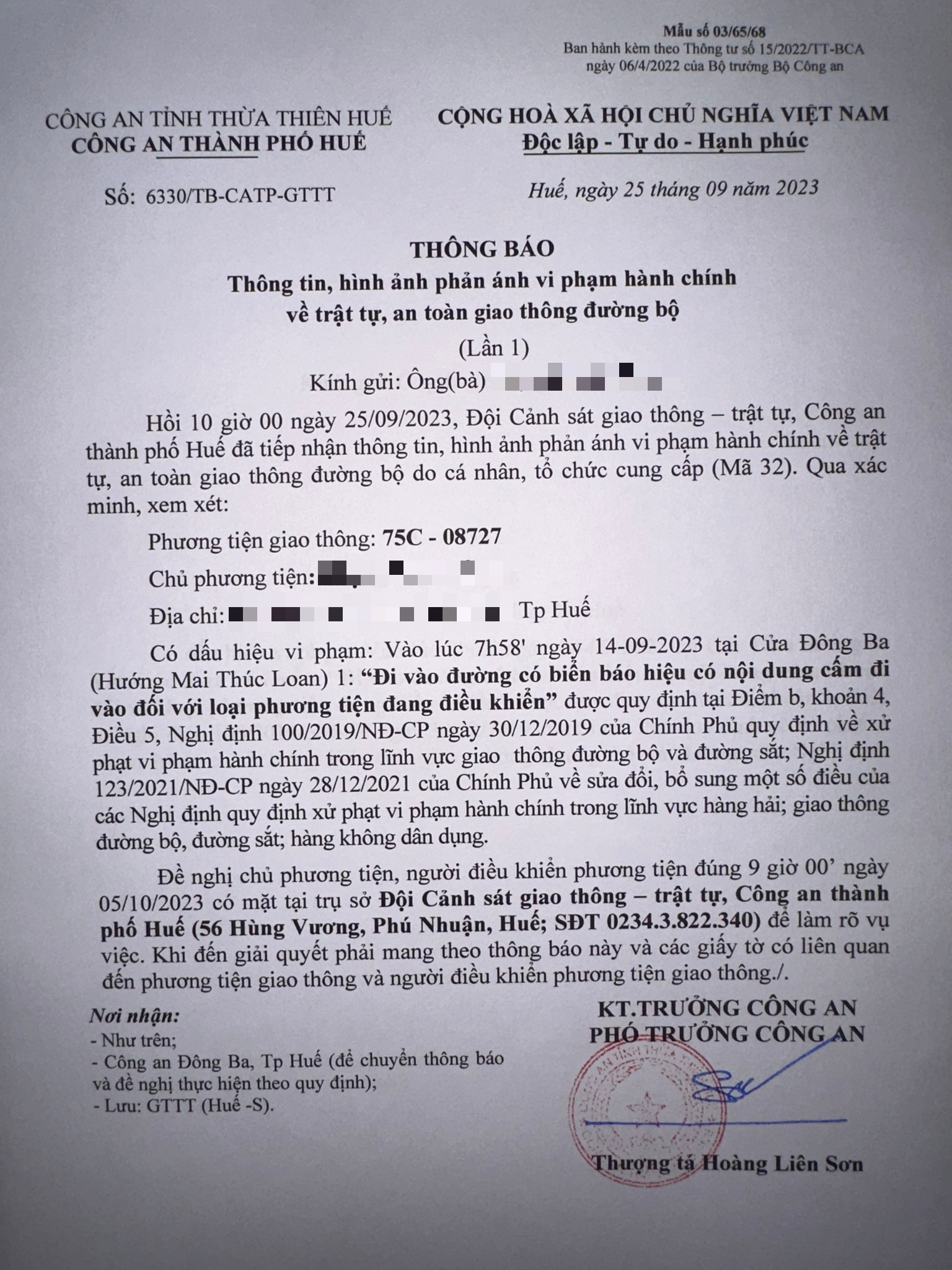 Vấn đề Ông/Bà phản ánh, Công an tỉnh đã chỉ đạo Công an thành phố Huế xác minh và xin thông báo kết quả như sau: