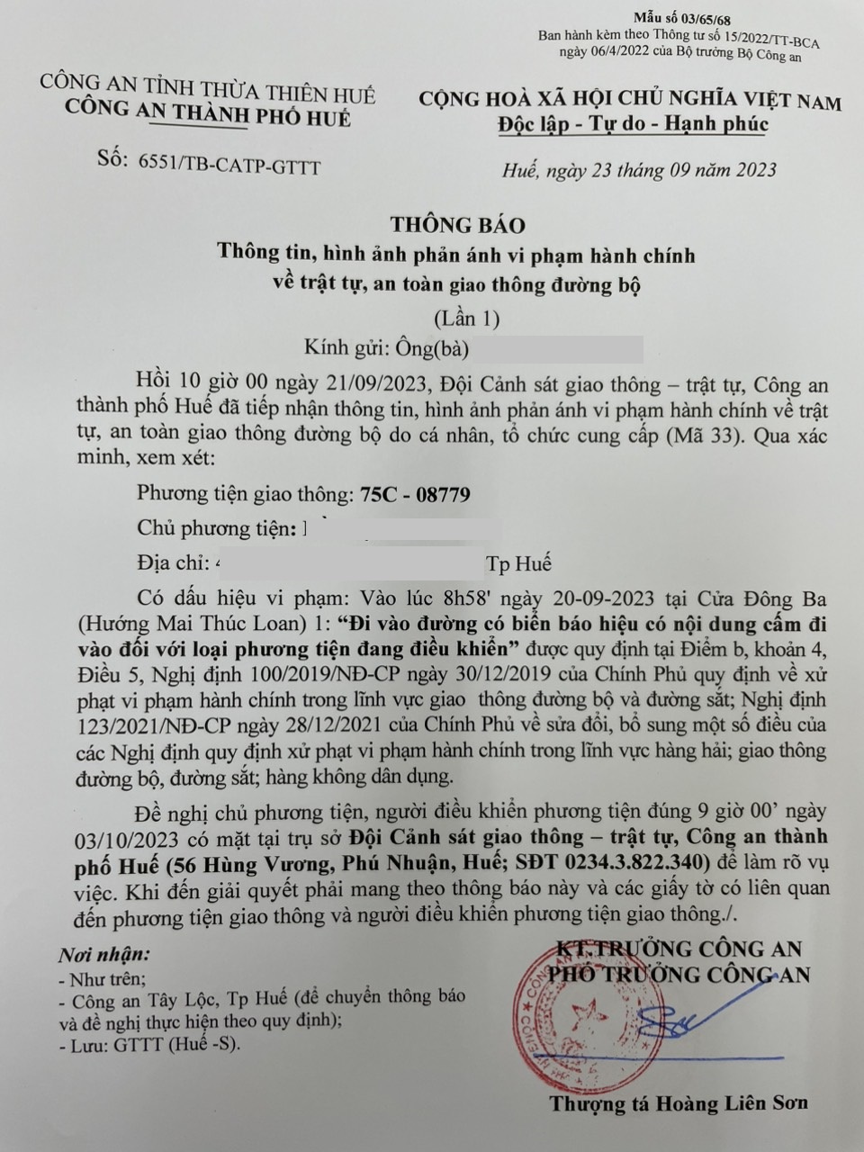Vấn đề quý Ông/Bà phản ánh, Công an tỉnh đã chỉ đạo Công an thành phố Huế xác minh và xin thông báo kết quả như sau: