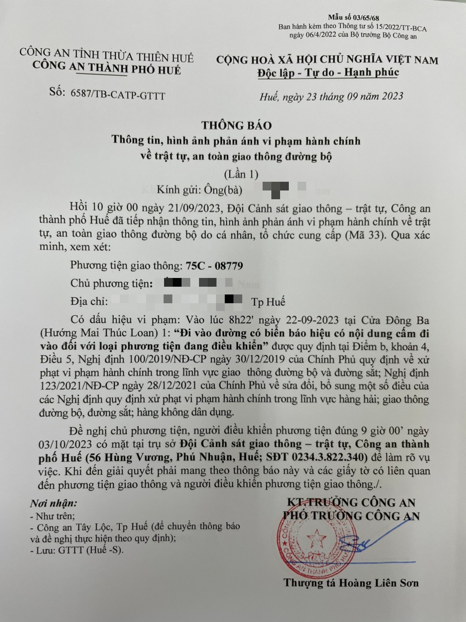 Vấn đề Ông/Bà phản ánh, Công an tỉnh đã chỉ đạo Công an thành phố Huế xác minh và xin thông báo kết quả như sau: