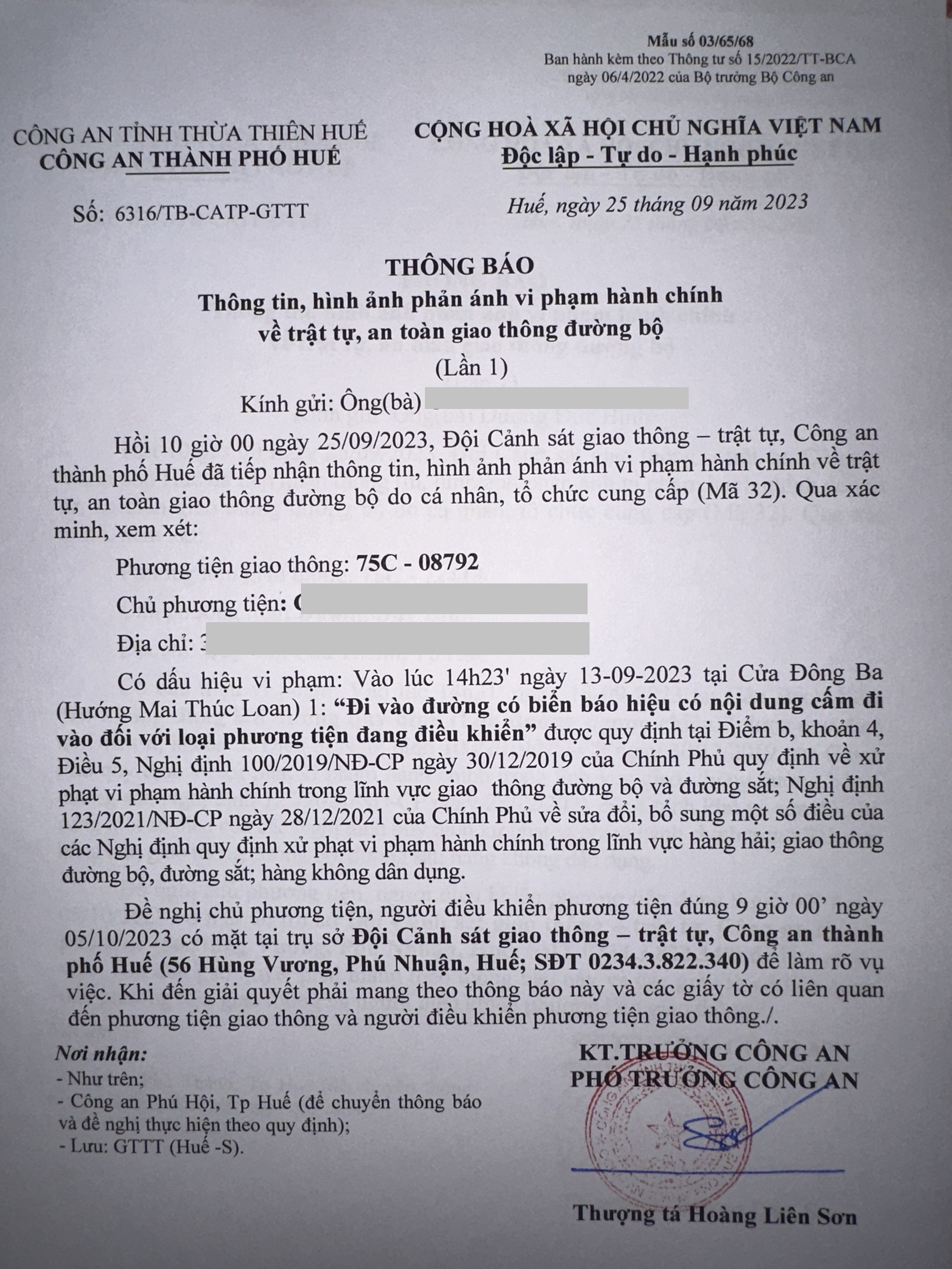 Công an thành phố cập nhật Quyết định xử phạt. (Đính kèm QĐ)