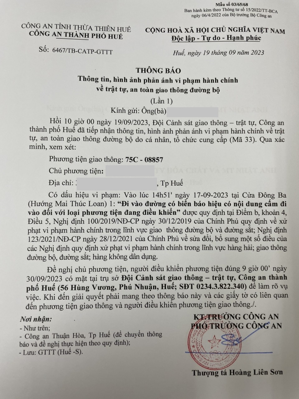 Vấn đề quý Ông/Bà phản ánh, Công an tỉnh đã chỉ đạo Công an thành phố Huế xác minh và xin thông báo kết quả như sau: