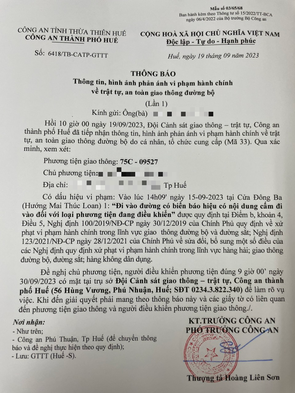 Vấn đề Ông/Bà phản ánh, Công an tỉnh đã chỉ đạo Công an thành phố Huế xác minh và xin thông báo kết quả như sau: