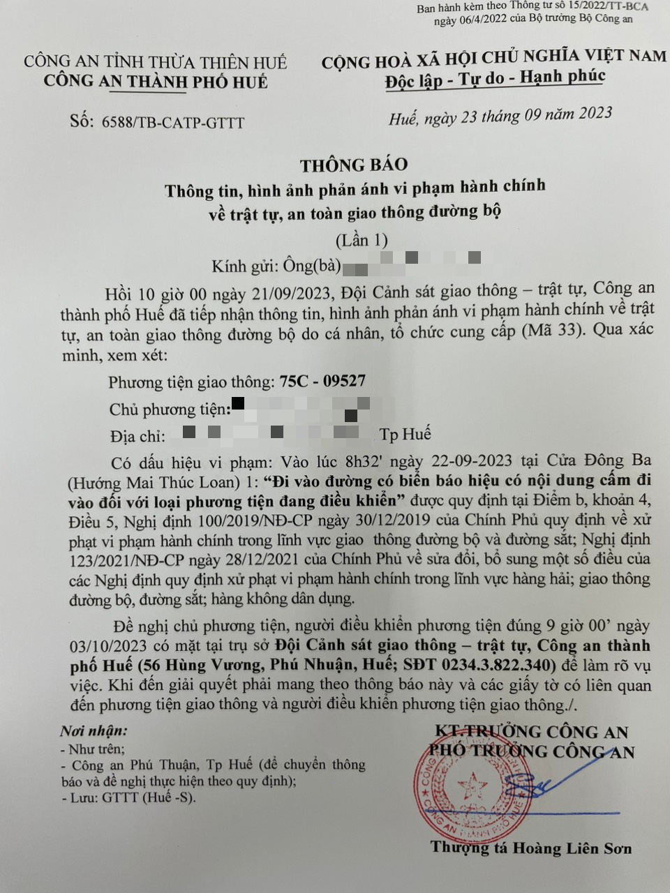 Vấn đề Ông/Bà phản ánh, Công an tỉnh đã chỉ đạo Công an thành phố Huế xác minh và xin thông báo kết quả như sau:
