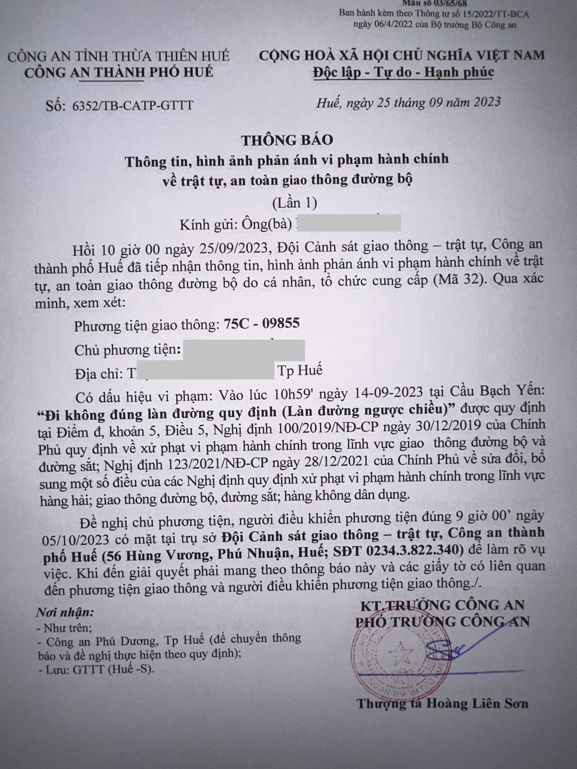 Vấn đề quý Ông/Bà phản ánh, Công an tỉnh đã chỉ đạo Công an thành phố Huế kiểm tra và xin thông báo kết quả như sau: