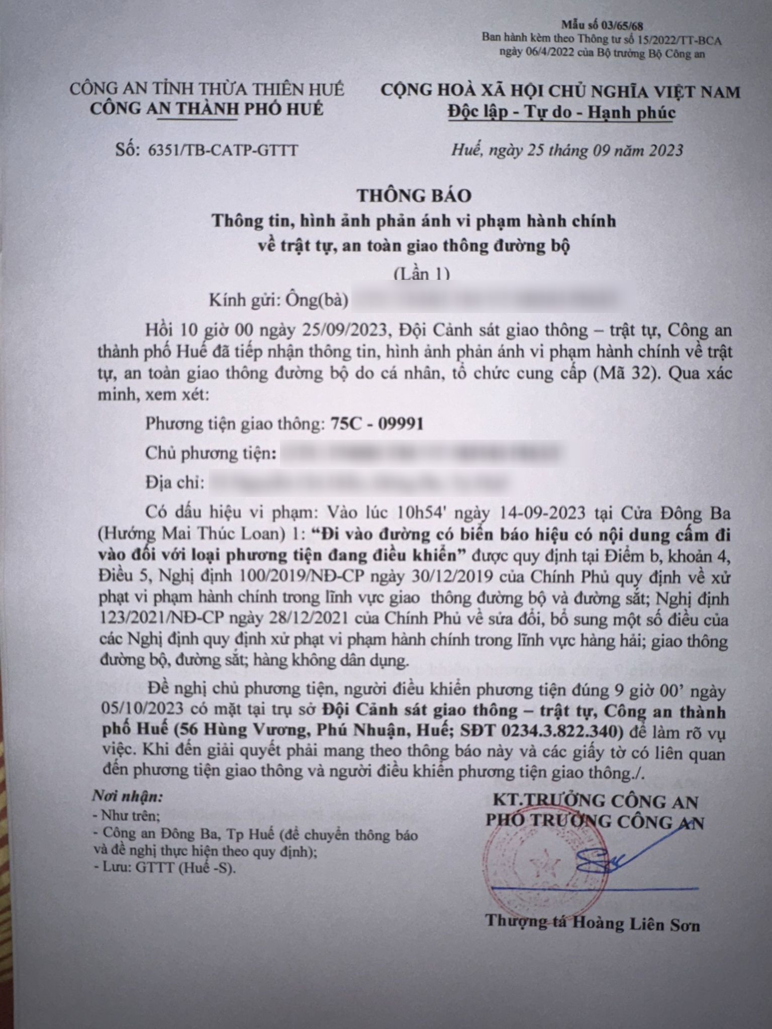 Công an thành phố cập nhật Quyết định xử phạt. (Đính kèm QĐ)