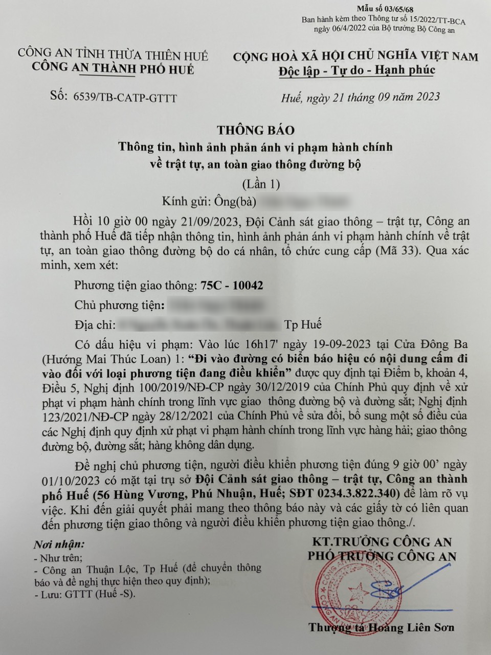 Vấn đề quý Ông/Bà phản ánh, Công an tỉnh đã chỉ đạo Công an thành phố Huế xác minh và xin thông báo kết quả như sau: