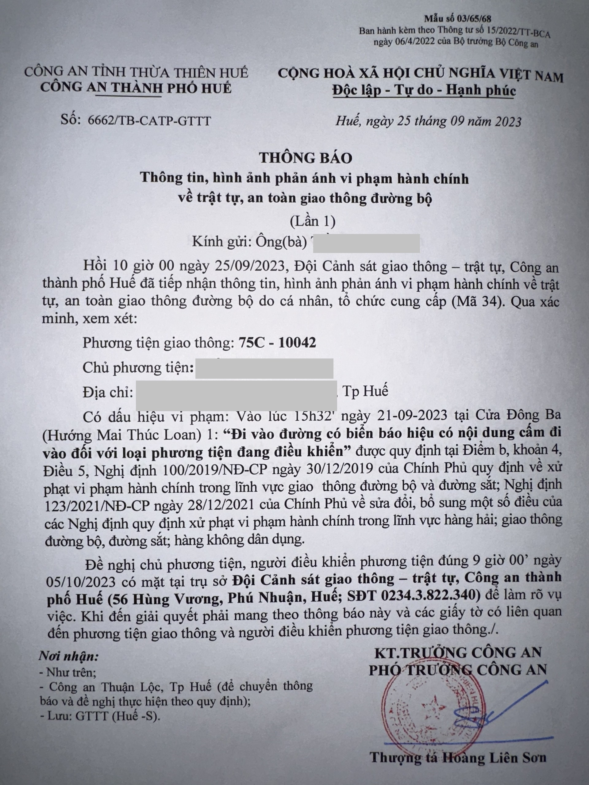 Vấn đề quý Ông/Bà phản ánh, Công an tỉnh đã chỉ đạo Công an thành phố Huế kiểm tra và xin thông báo kết quả như sau: