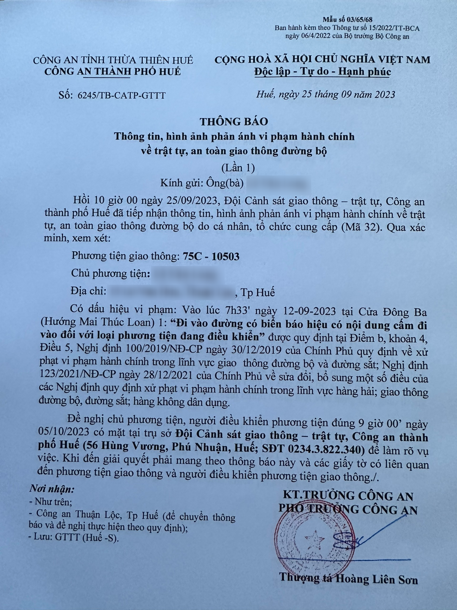 Công an thành phố cập nhật Quyết định xử phạt. (Đính kèm hình ảnh)