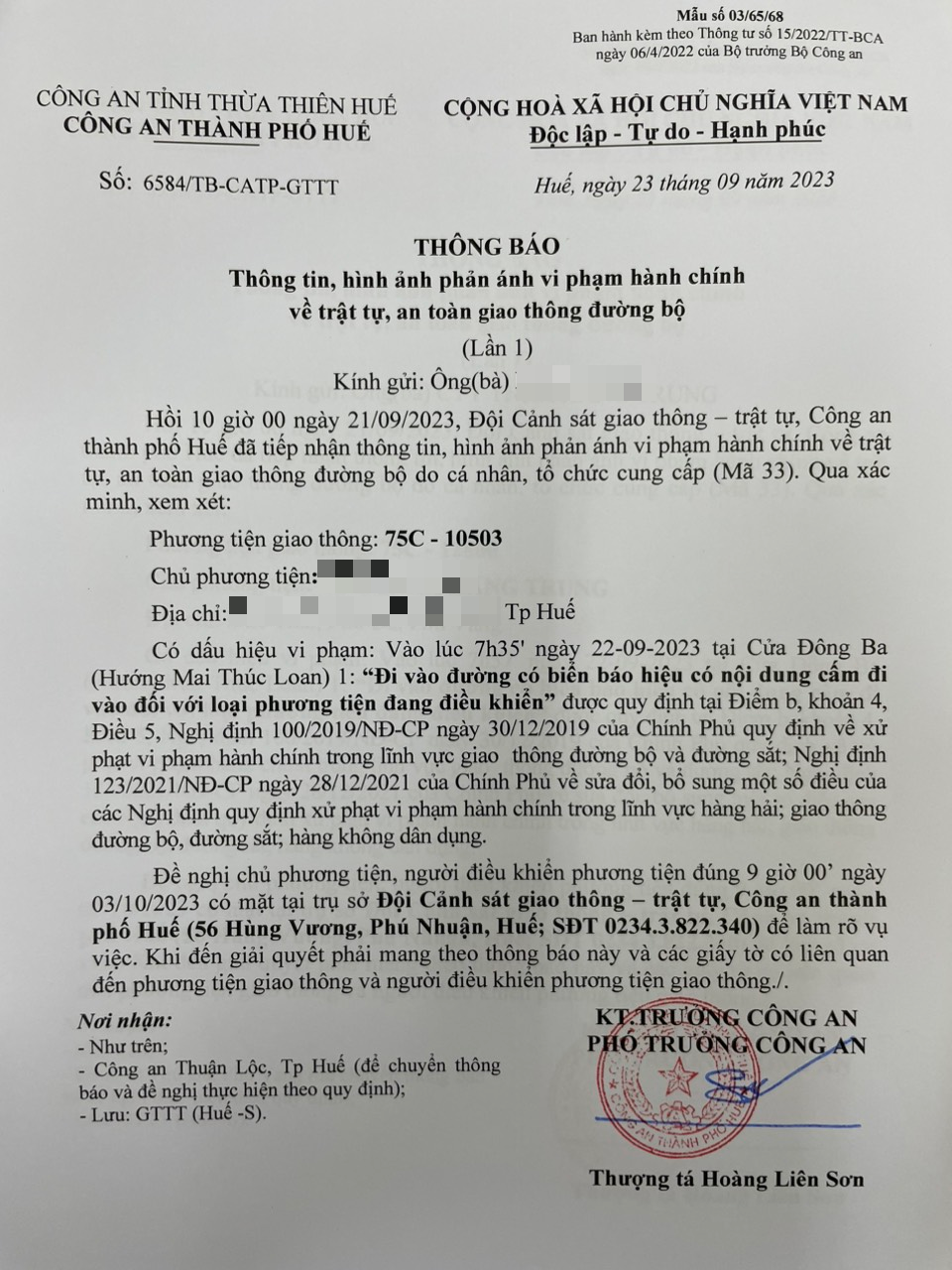 Vấn đề quý Ông/Bà phản ánh, Công an tỉnh đã chỉ đạo Công an thành phố Huế kiểm tra và xin thông báo kết quả như sau: