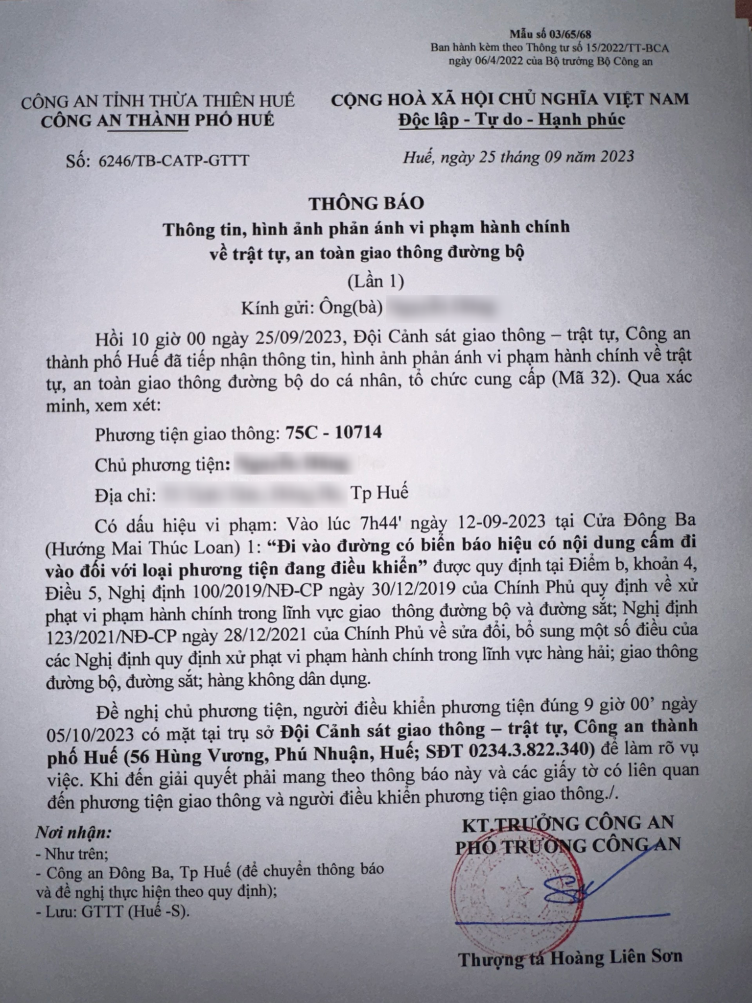 Vấn đề Ông/Bà phản ánh, Công an tỉnh đã chỉ đạo Công an thành phố Huế xác minh và xin thông báo kết quả như sau: