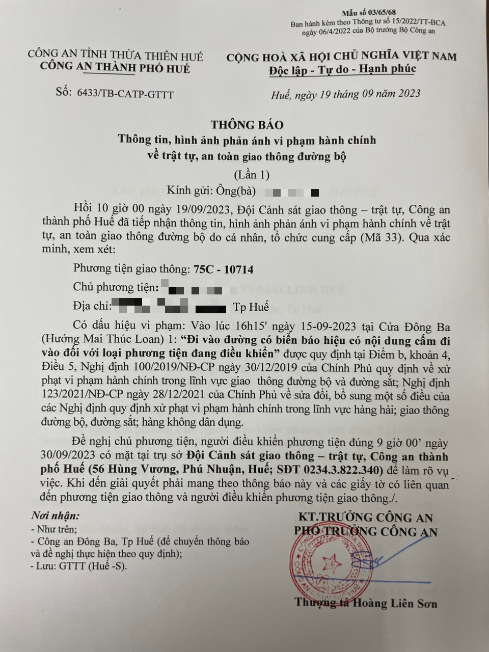 Vấn đề Ông/Bà phản ánh, Công an tỉnh đã chỉ đạo Công an thành phố Huế xác minh và xin thông báo kết quả như sau: