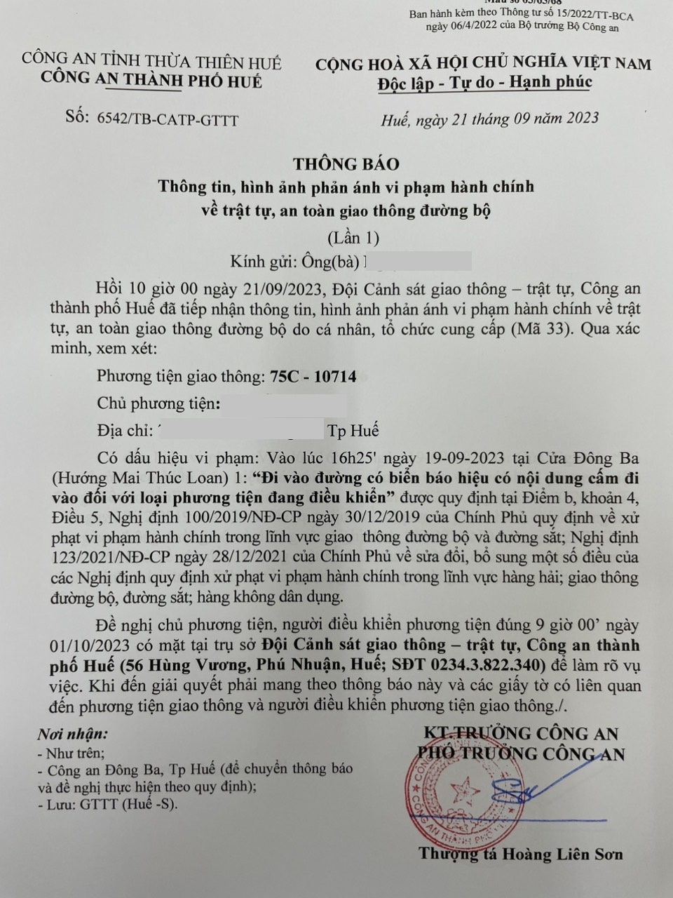 Vấn đề quý Ông/Bà phản ánh, Công an tỉnh đã chỉ đạo Công an thành phố Huế kiểm tra và xin thông báo kết quả như sau: