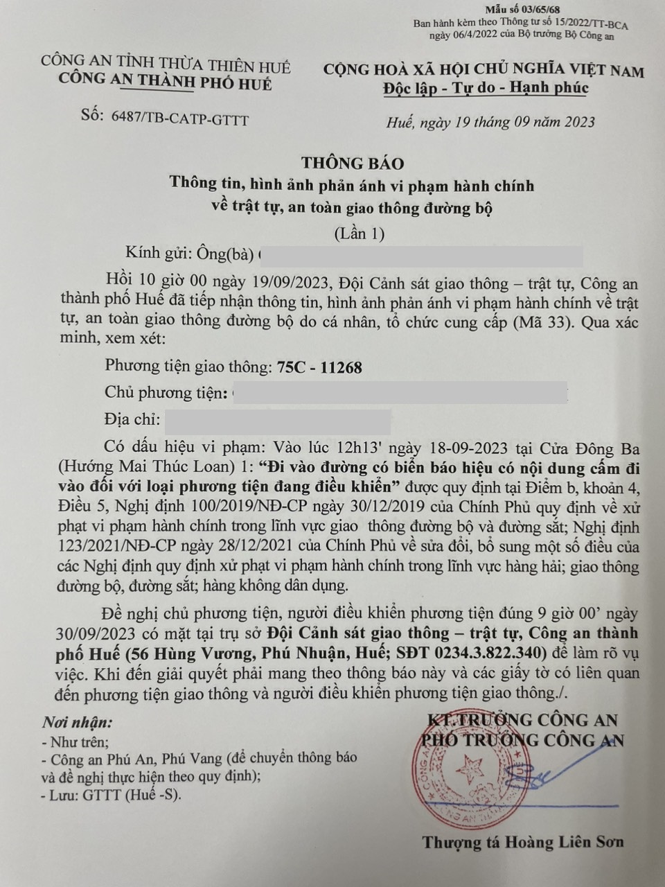 Vấn đề quý Ông/Bà phản ánh, Công an tỉnh đã chỉ đạo Công an thành phố Huế kiểm tra và xin thông báo kết quả như sau: