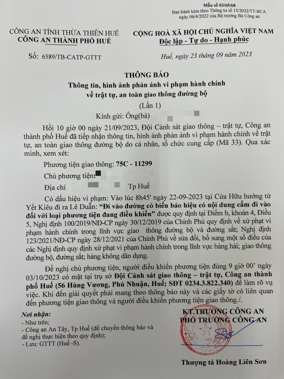 Vấn đề Ông/Bà phản ánh, Công an tỉnh đã chỉ đạo Công an thành phố Huế xác minh và xin thông báo kết quả như sau:
