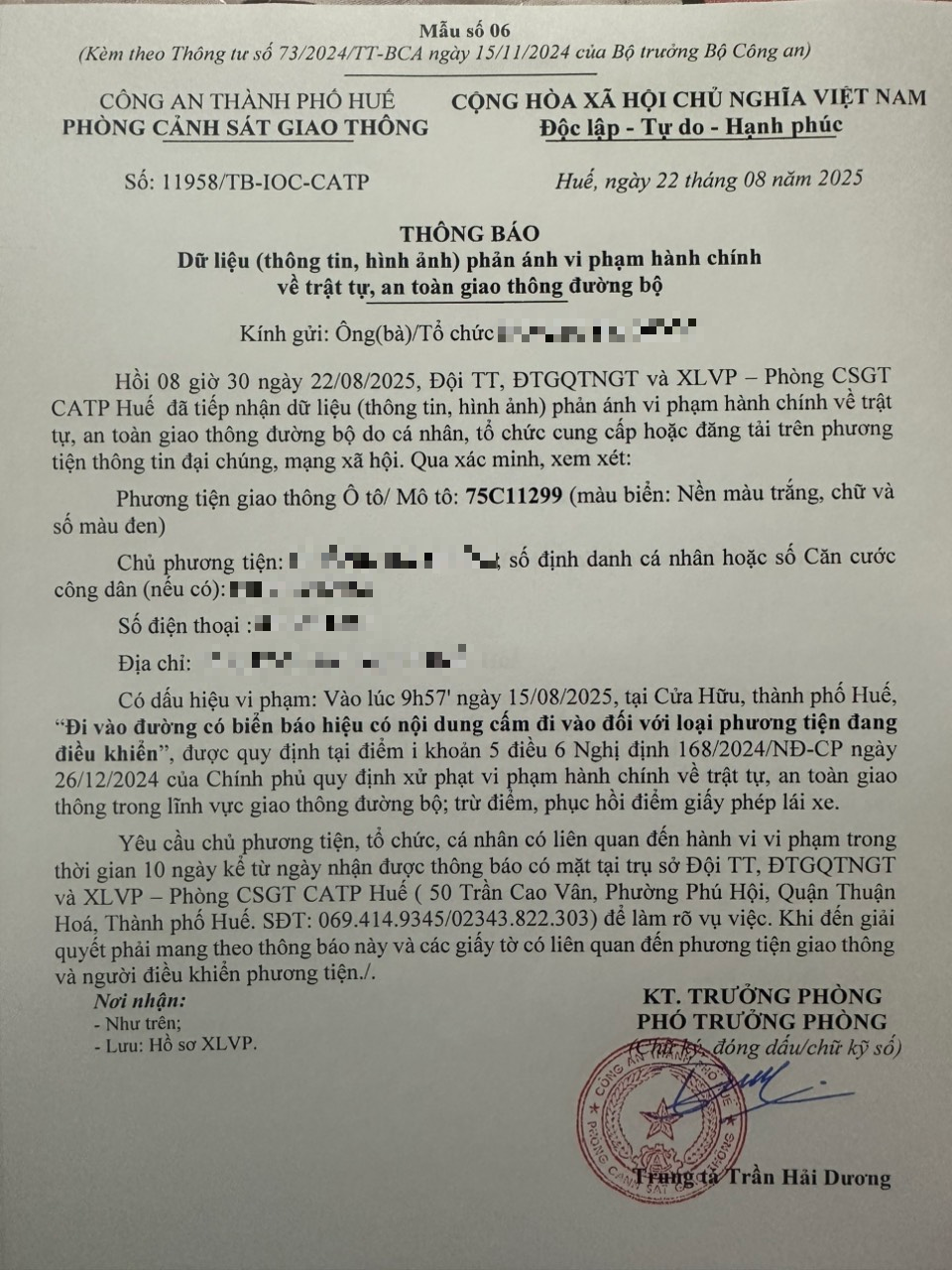 Vấn đề quý Ông/Bà phản ánh, Phòng Cảnh sát giao thông – Công an thành phố Huế đã kiểm tra và xin thông báo kết quả như sau: