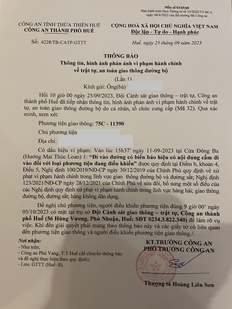 Công an thành phố cập nhật Quyết định xử phạt. (Đính kèm QĐ)