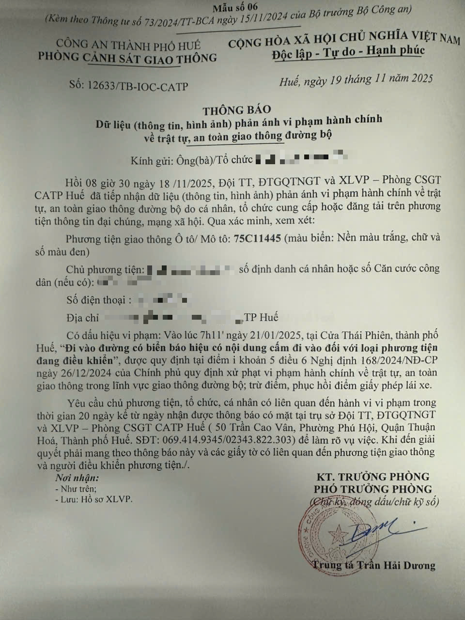 Vấn đề quý Ông/Bà phản ánh, Phòng Cảnh sát giao thông – Công an thành phố Huế đã kiểm tra và xin thông báo kết quả như sau: