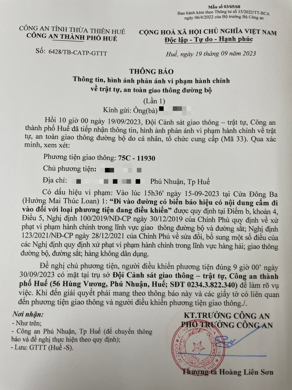 Công an thành phố cập nhật Quyết định xử phạt. (Đính kèm QĐ)