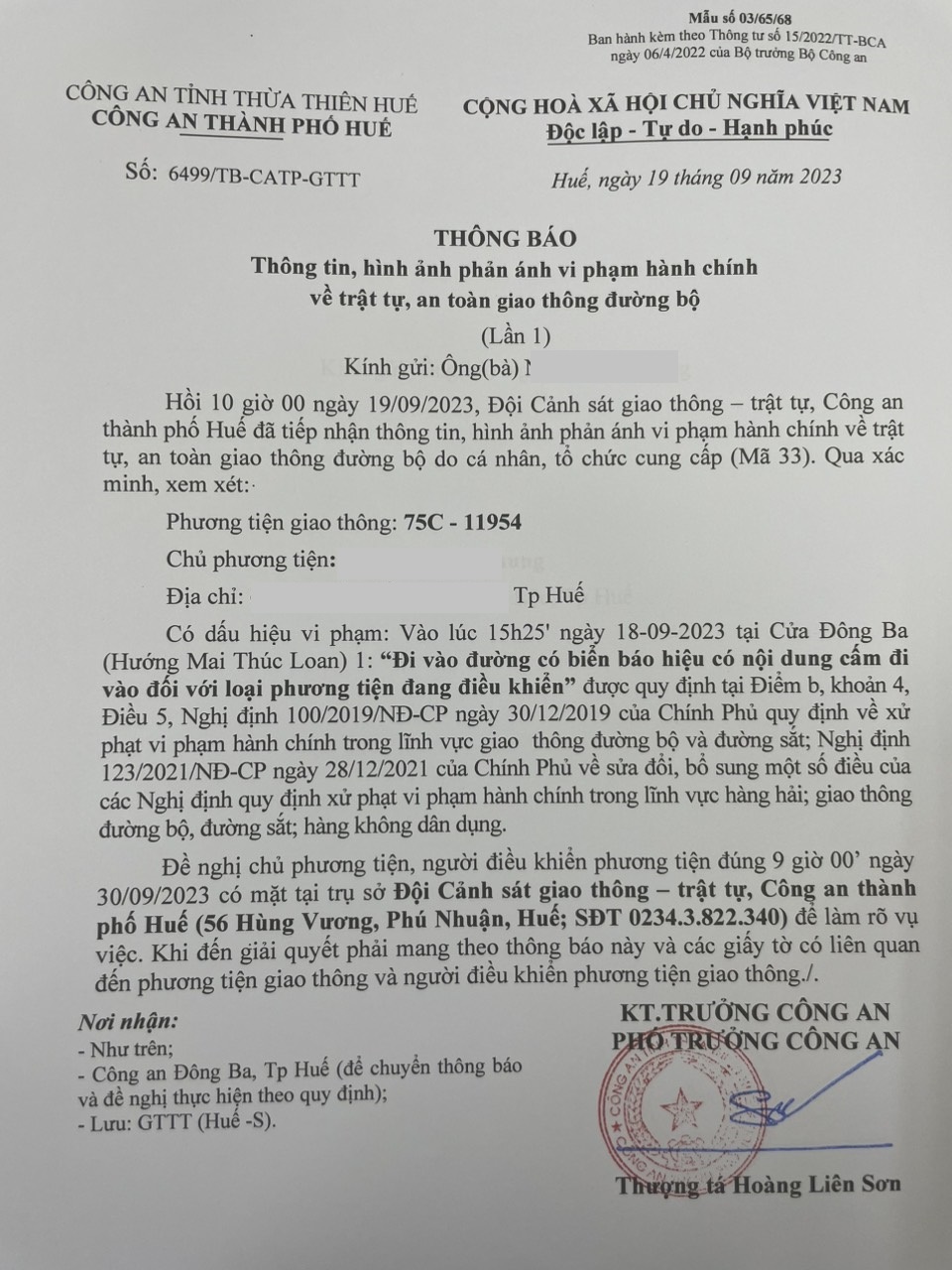 Vấn đề quý Ông/Bà phản ánh, Công an tỉnh đã chỉ đạo Công an thành phố Huế kiểm tra và xin thông báo kết quả như sau: