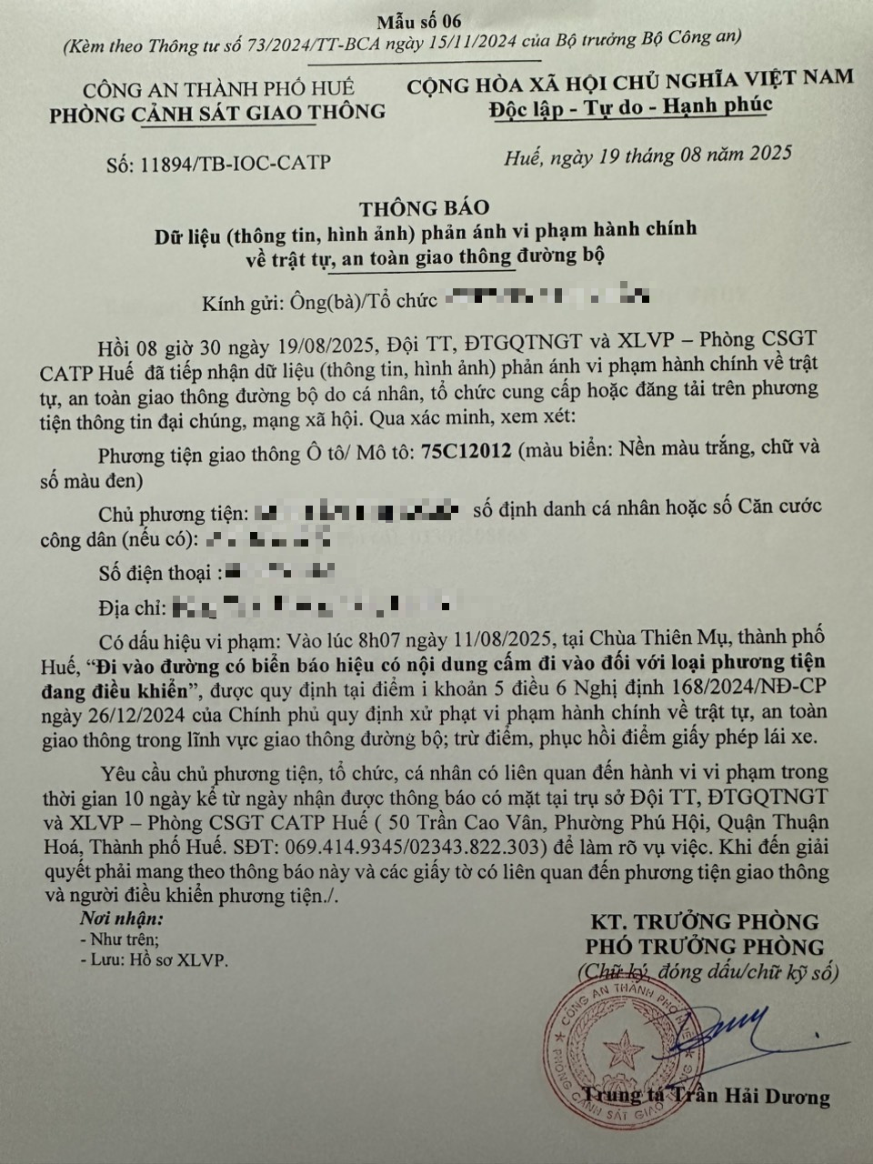 Vấn đề quý Ông/Bà phản ánh, Phòng Cảnh sát giao thông – Công an thành phố Huế đã kiểm tra và xin thông báo kết quả như sau: