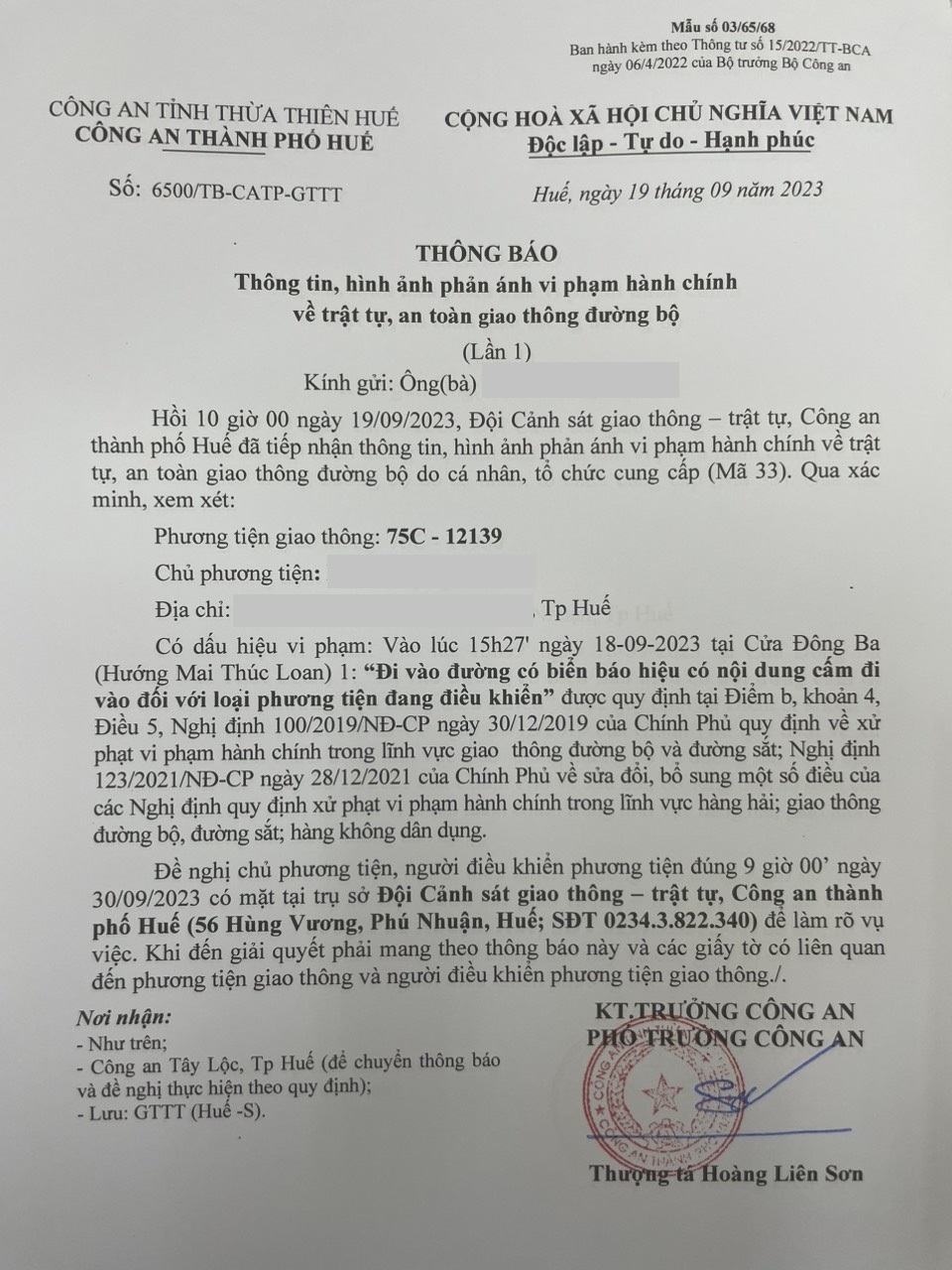 Vấn đề quý Ông/Bà phản ánh, Công an tỉnh đã chỉ đạo Công an thành phố Huế kiểm tra và xin thông báo kết quả như sau: