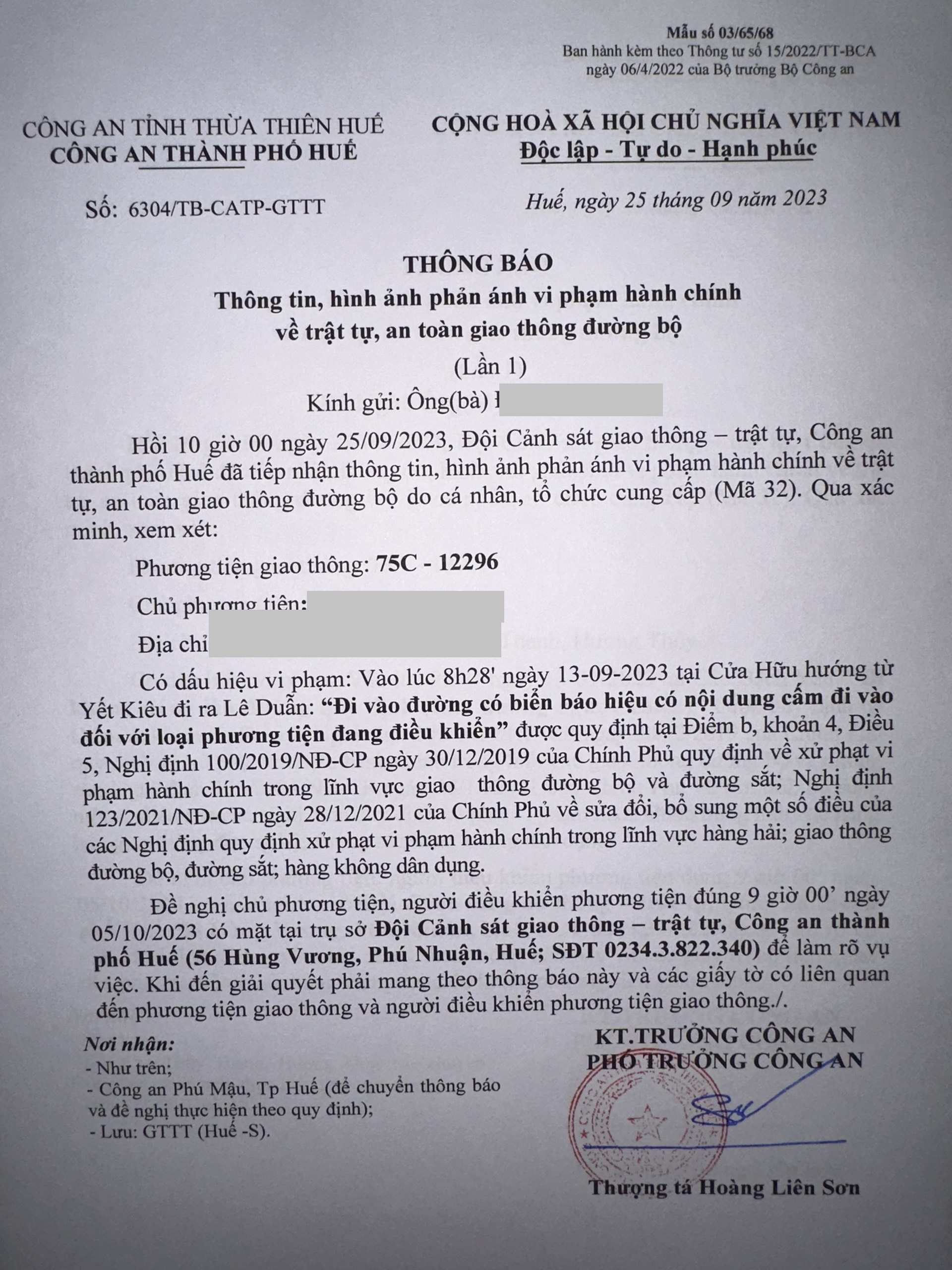 Công an thành phố cập nhật: Quyết định xử phạt. (Đính kèm QĐ)