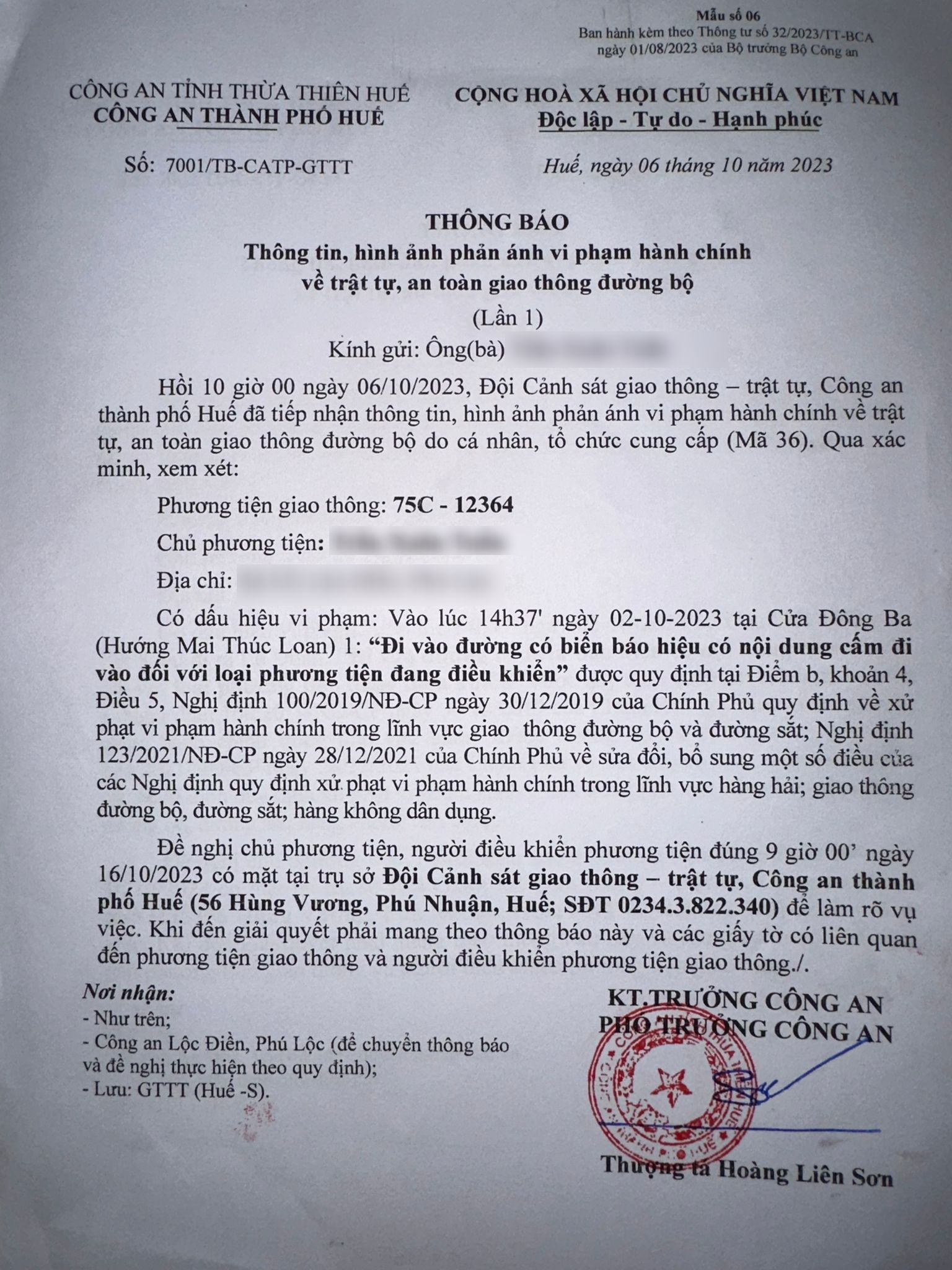 Vấn đề quý Ông/Bà phản ánh, Công an tỉnh đã chỉ đạo Công an thành phố Huế kiểm tra và xin thông báo kết quả như sau: